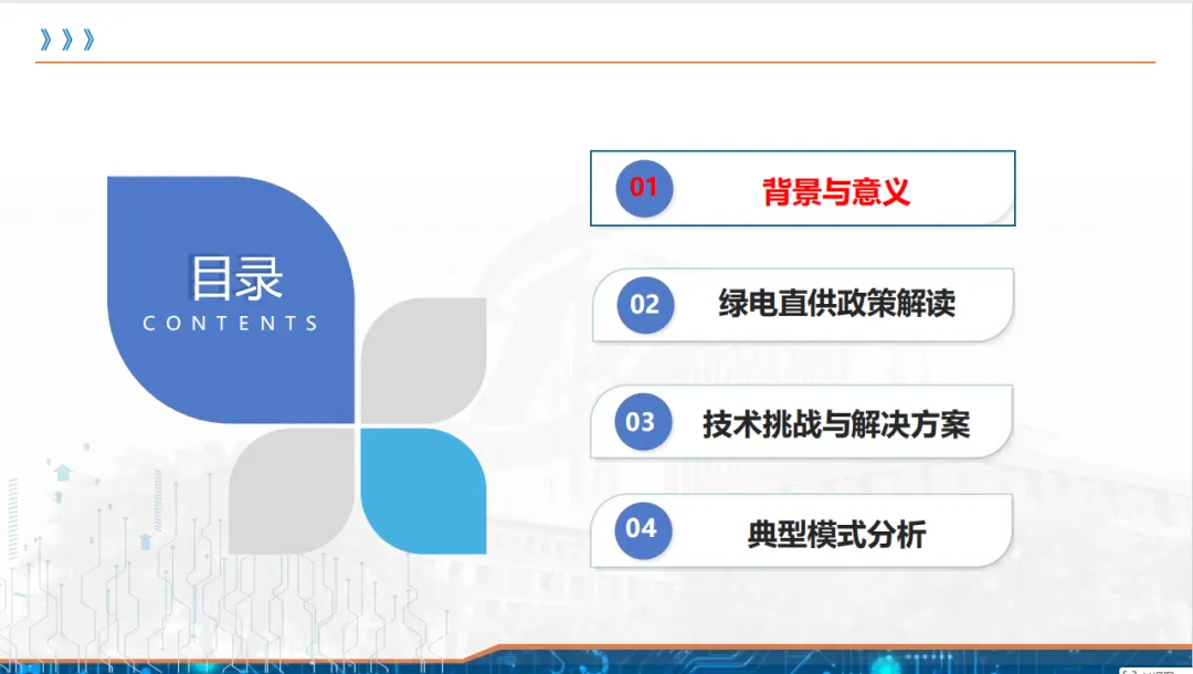 2025 绿电直供 / 直连技术交流课件,围绕绿电直连发展的背景、政策、技术、模式等展开,核心为破解国际绿色壁垒与新能源消纳难题,推动电力市场化改革。