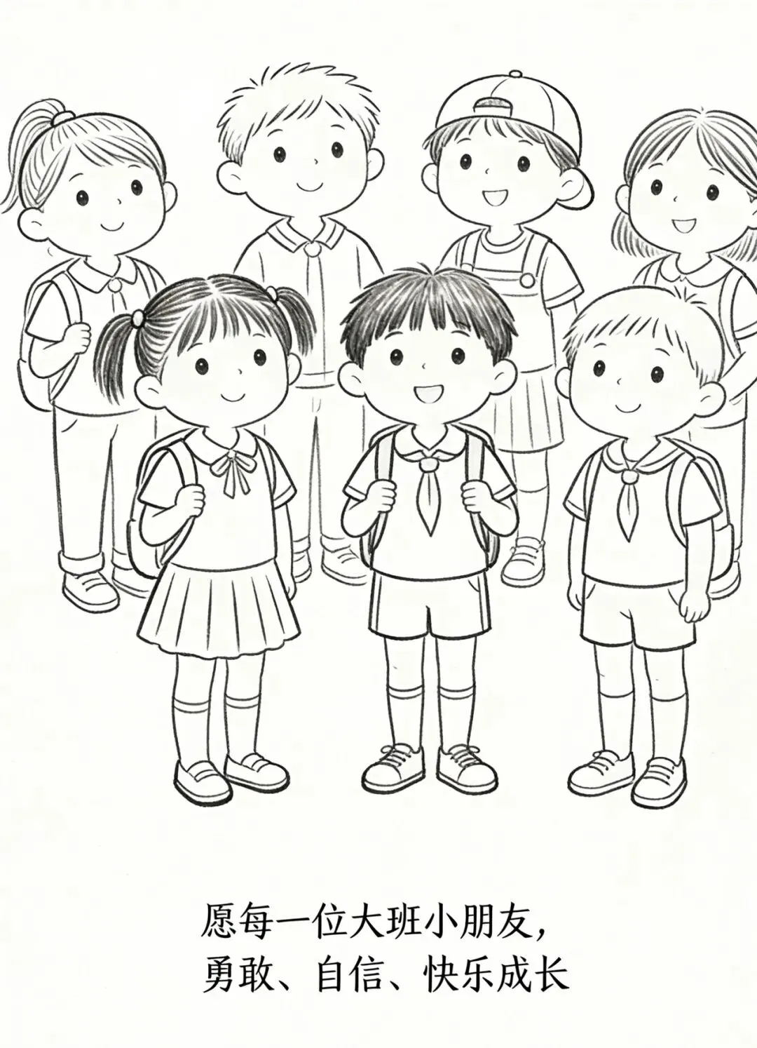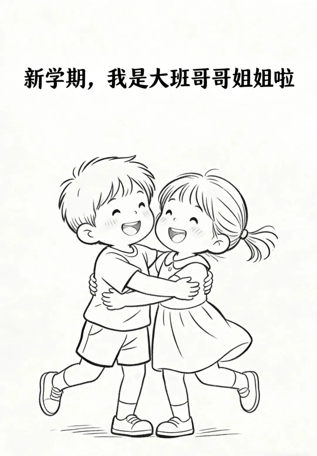 1. 绘本《新学期,我是大班哥哥姐姐啦》黑白线稿每人1套