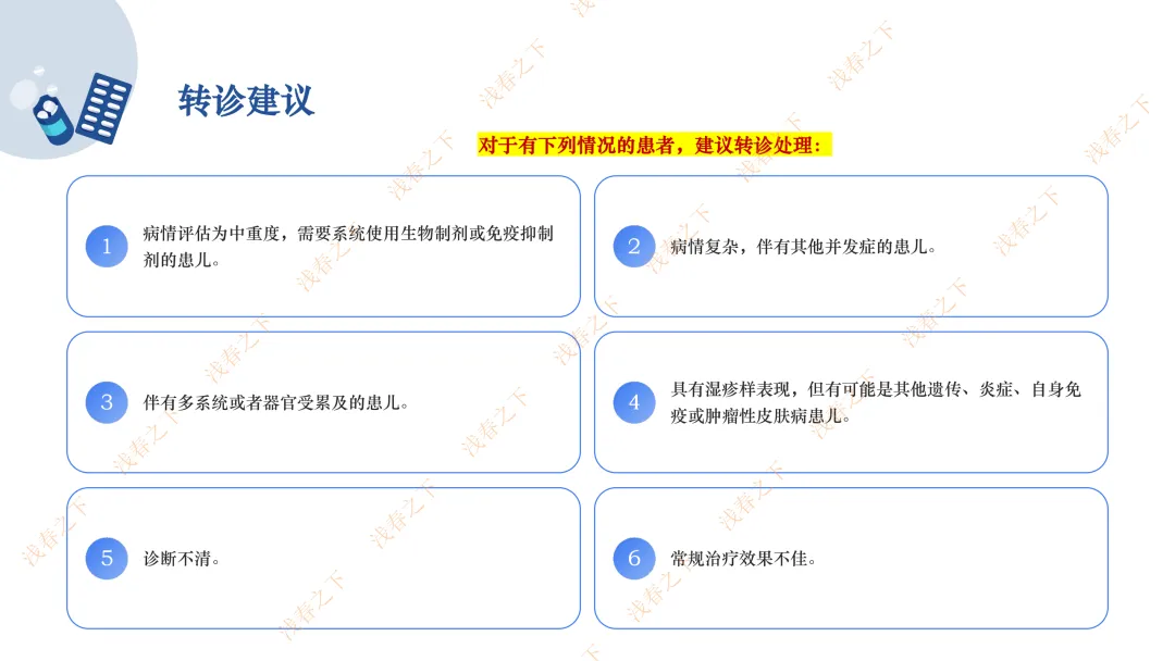 参考文献:[1]中华医学会, 中华医学会杂志社, 中华医学会皮肤性病学分会, 等. 儿童特应性皮炎基层诊疗指南(2023年)[J]. 中华全科医师杂志, 2023, 22(1): 8-18. DOI: 10.3760/cma.j.cn114798-20220915-00924.