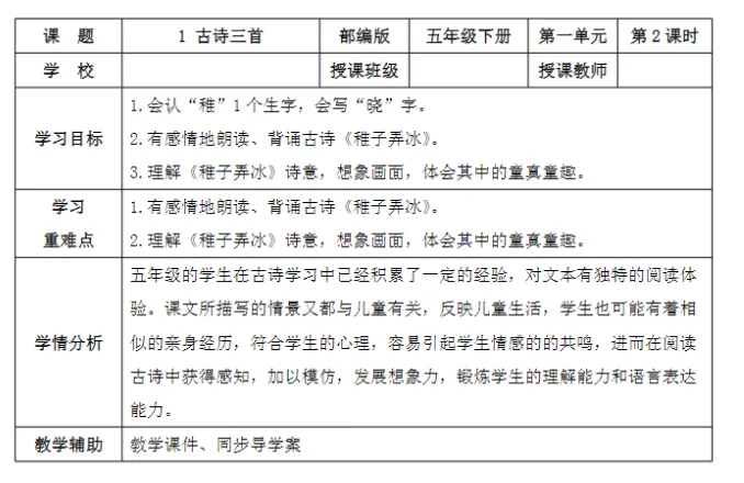【精品课件】五年级语文下《古诗三首》(稚子弄冰)课件+教学设计+分层作业+学习任务单
