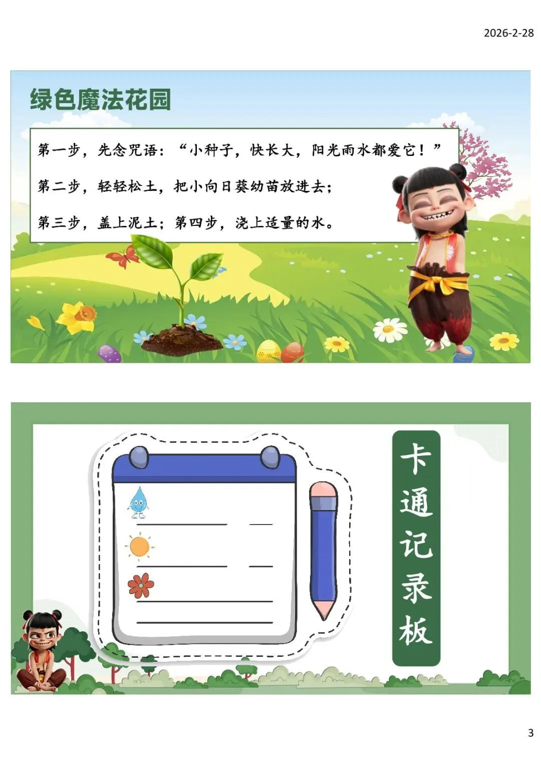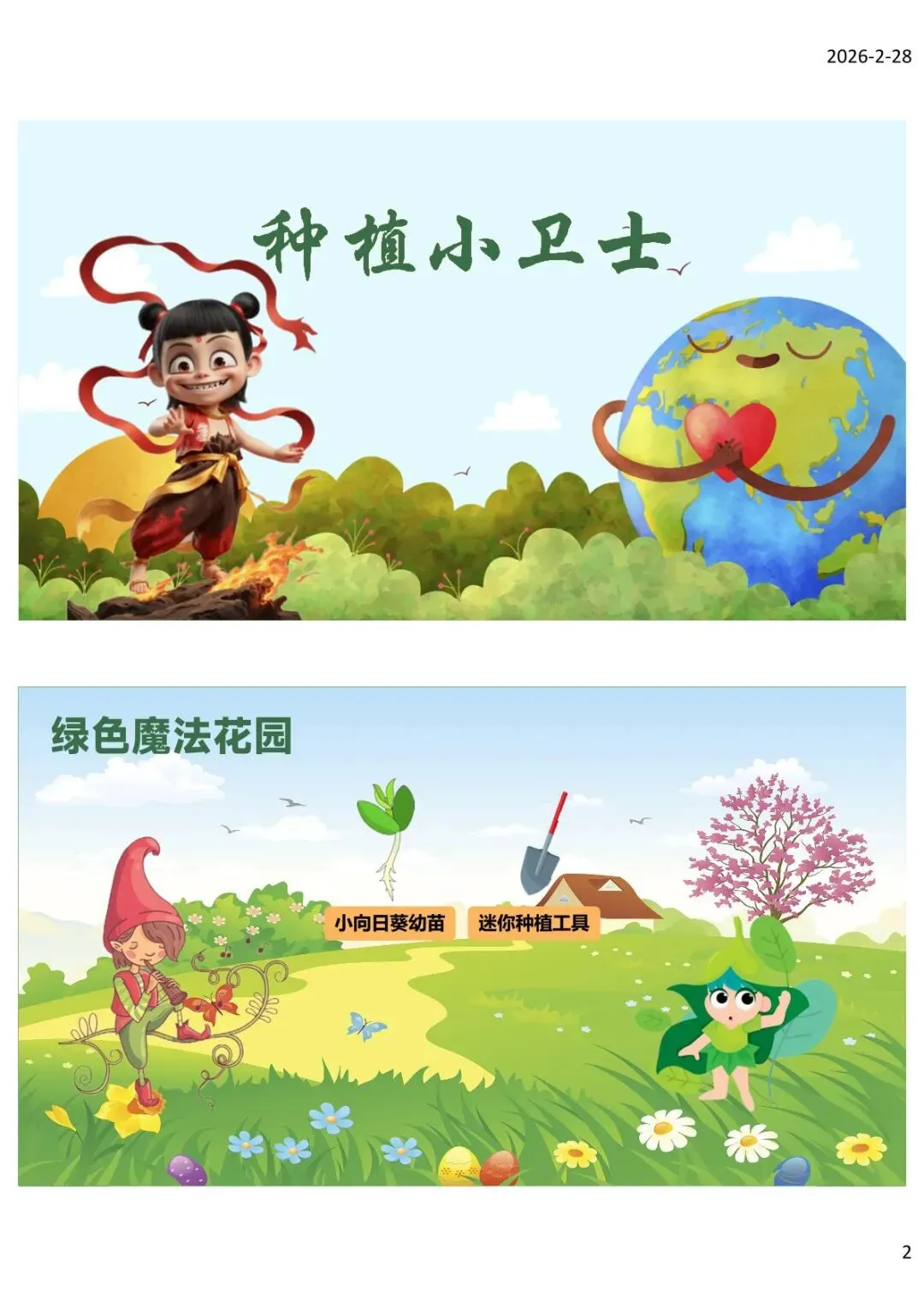 设计意图:通过打造充满童趣的种植场景和有趣的种植咒语,增加种植活动的趣味性。让幼儿亲身体验种植过程,培养他们的责任感和观察能力,让幼儿直观地了解植物生长与环境的关系,感受守护生命的意义。