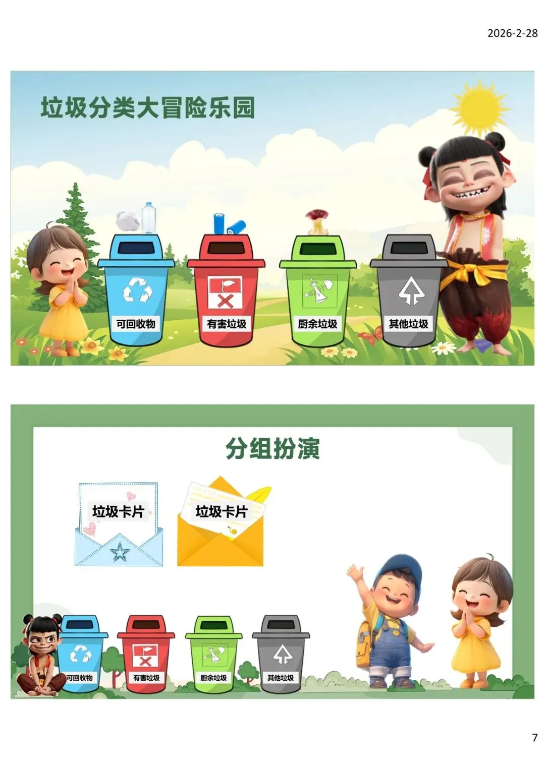 设计意图:通过打造游戏乐园的形式,让幼儿在充满趣味的游戏中学习垃圾分类知识,增加学习的趣味性和互动性。强化幼儿的环保意识,让幼儿在游戏中熟练掌握正确分类垃圾的方法,同时培养幼儿的团队合作精神。