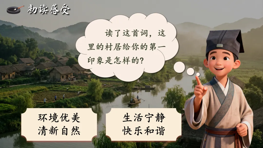 >四下《清平乐·村居》公开课AI赋能课件|金戈铁马之外,自有村居温柔(课件+AI视频+教案)