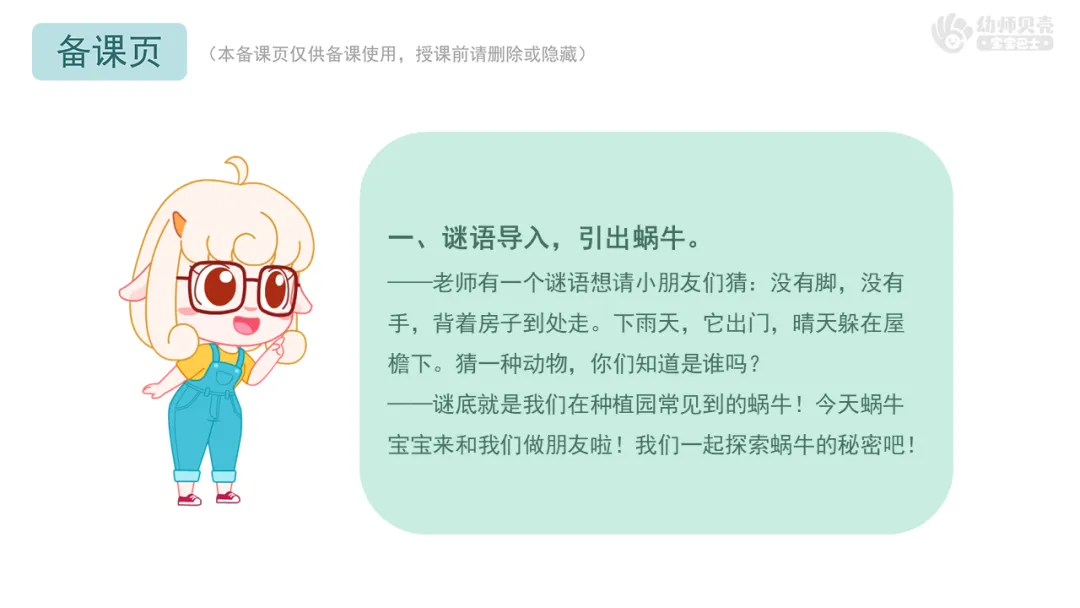 ——谜底就是我们在种植园常见到的蜗牛!今天蜗牛宝宝来和我们做朋友啦!我们一起探索蜗牛的秘密吧!
