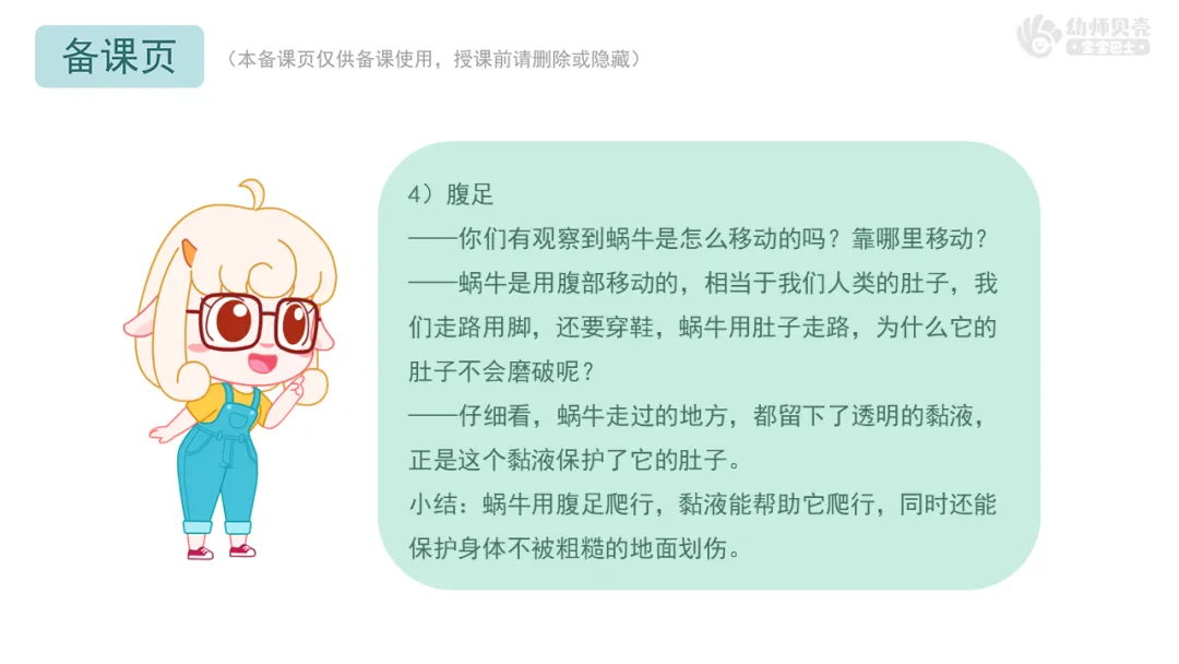——你们有观察到蜗牛是怎么移动的吗?靠哪里移动?