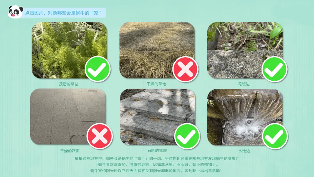 ——猜猜这些地方中,哪些会是蜗牛的“家”?
