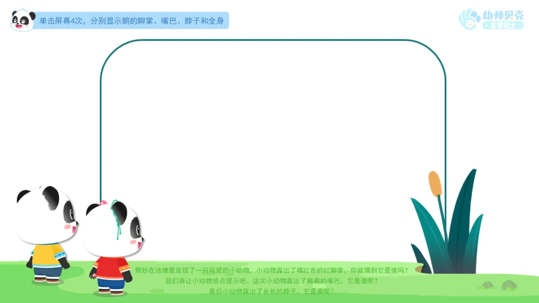 ——我们再让小动物给点提示吧。这次小动物露出了扁扁的嘴巴,它是谁呢?