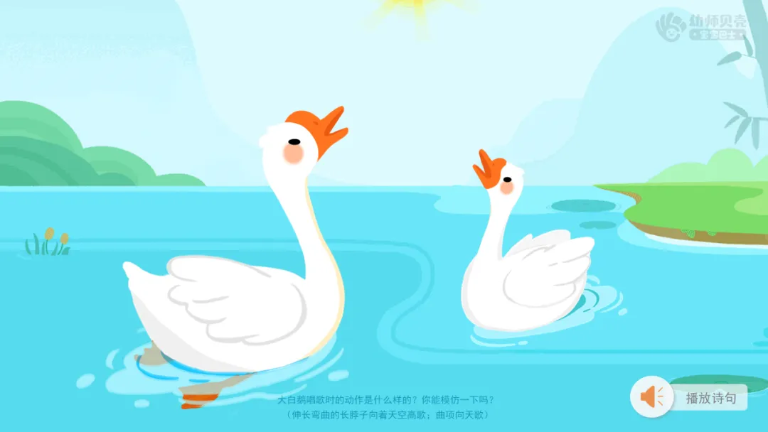 ——大白鹅在池塘里做什么呢?(唱歌、游泳)