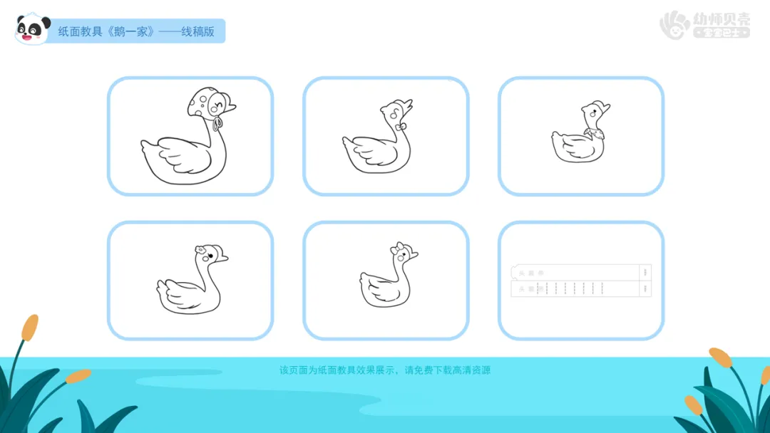 2.发放纸面教具《鹅一家》,教师扮演“鹅妈妈”,幼儿扮演“鹅”。