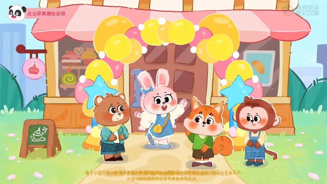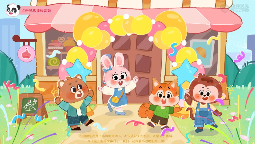 ——兔子小姐是一位蛋糕大师,她即将开一家甜甜蛋糕店,并邀请森林里的小伙伴为开业典礼跳舞。