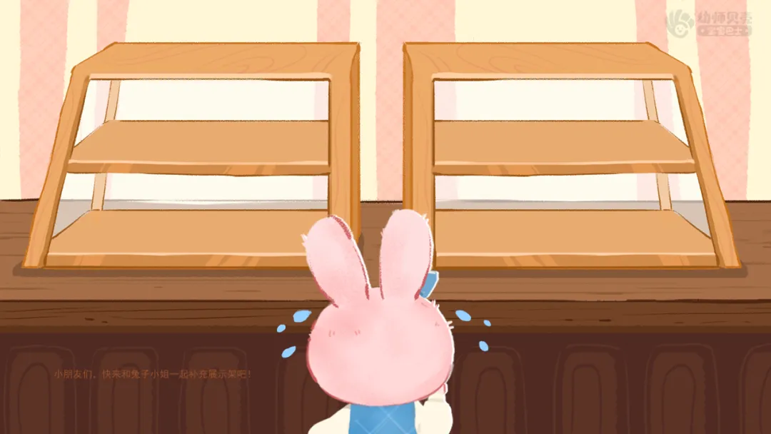 ——小朋友们,快来和兔子小姐一起补充展示架吧!