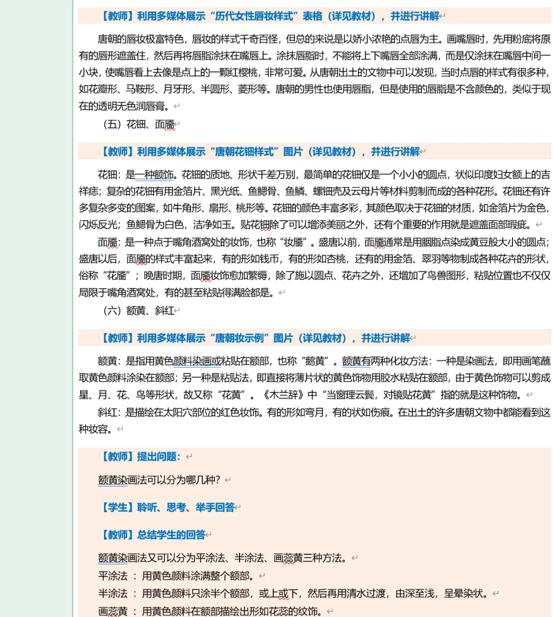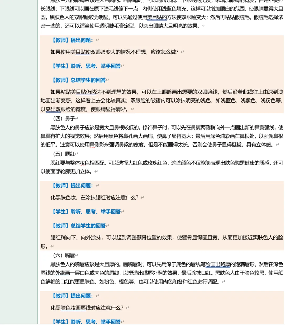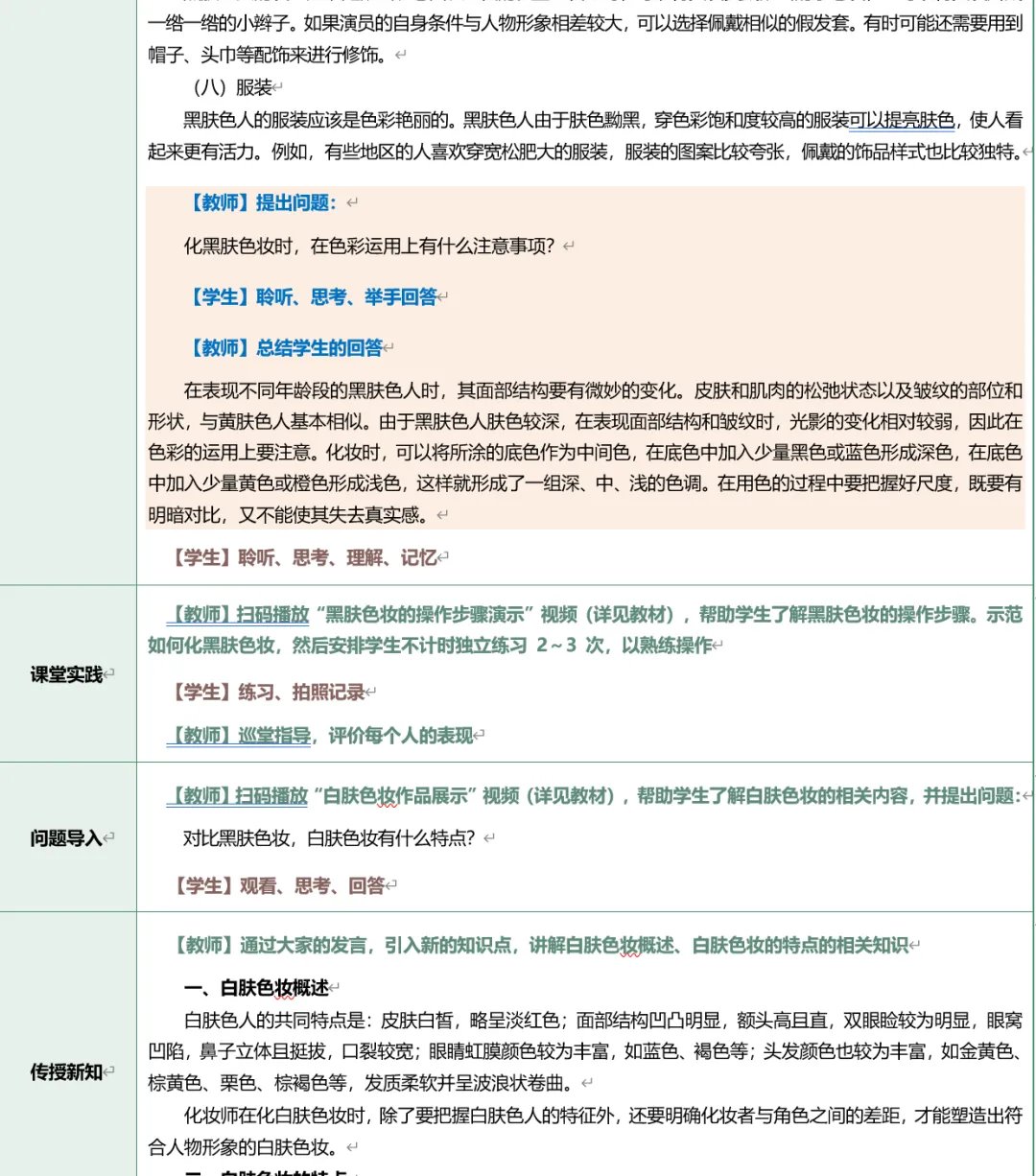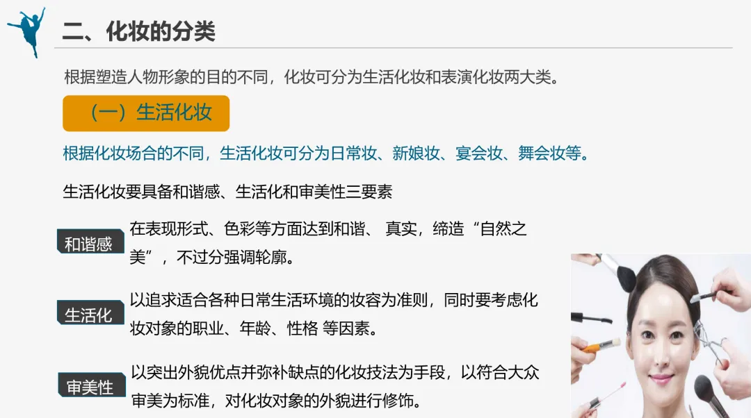 化妆造型教学培训PPT课件及教案的部分内容展示如下: