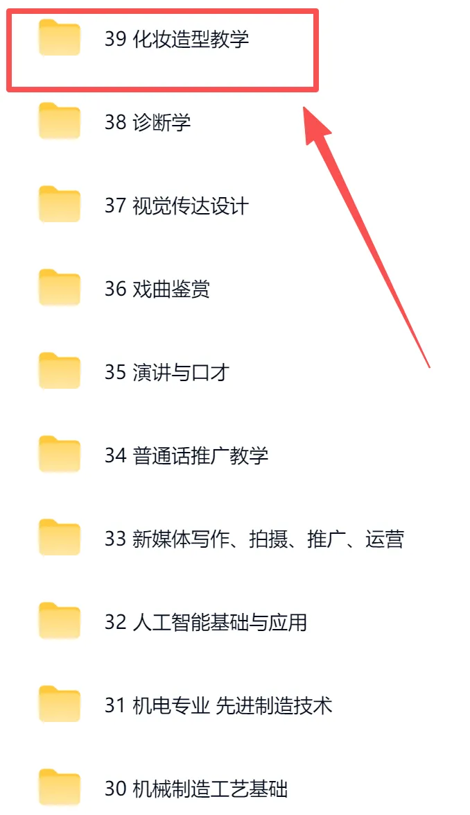 在编号39开头的“化妆造型教学” 的文件夹里,大家对着文件夹名称查找即可,有预览图的