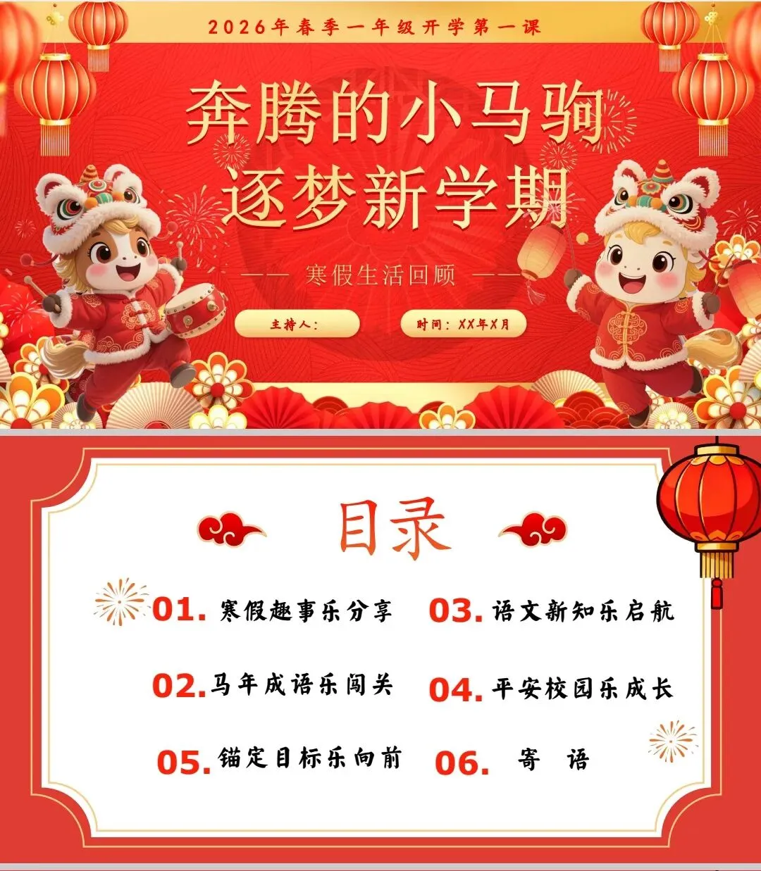 音效激趣:播放欢快的马蹄声音频,教师提问:“同学们,这清脆的声音是谁发来的新学期信号呀?”引导学生猜出“小马”,引出2026马年主题。