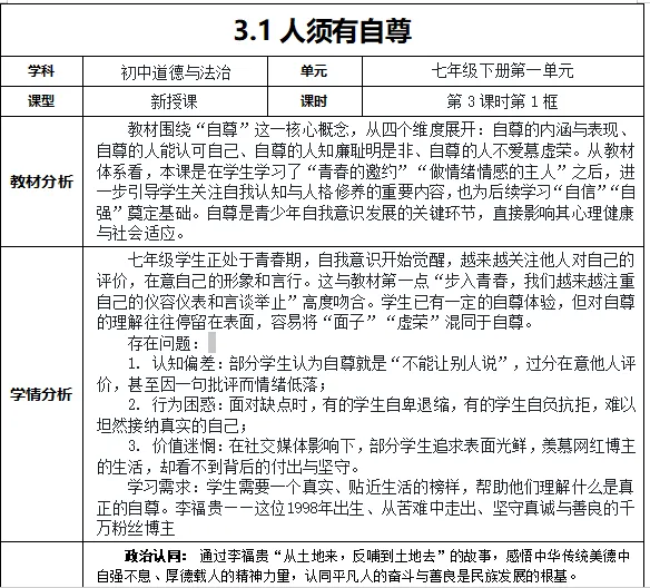 大家好呀~今天分享的是【26春】七下3.1《人须有自尊》的课件+教学设计。话不多说,详细请看以下内容。