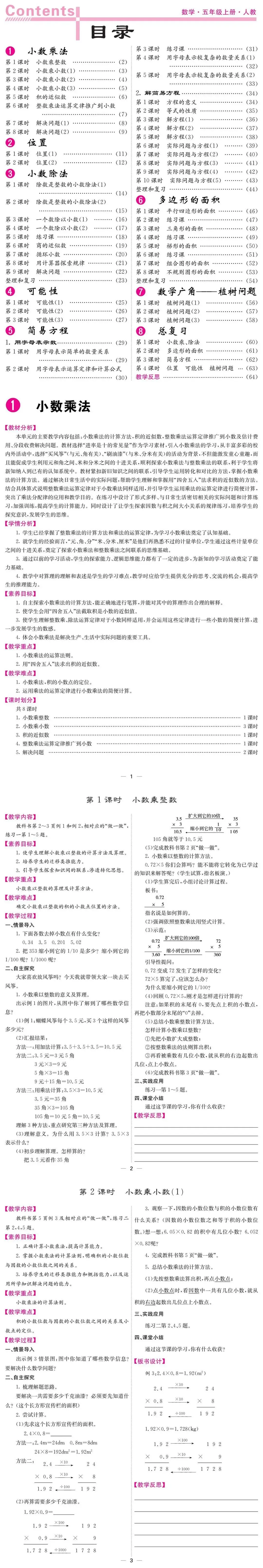 >人教版新教材五年级上册数学教案