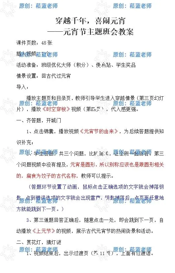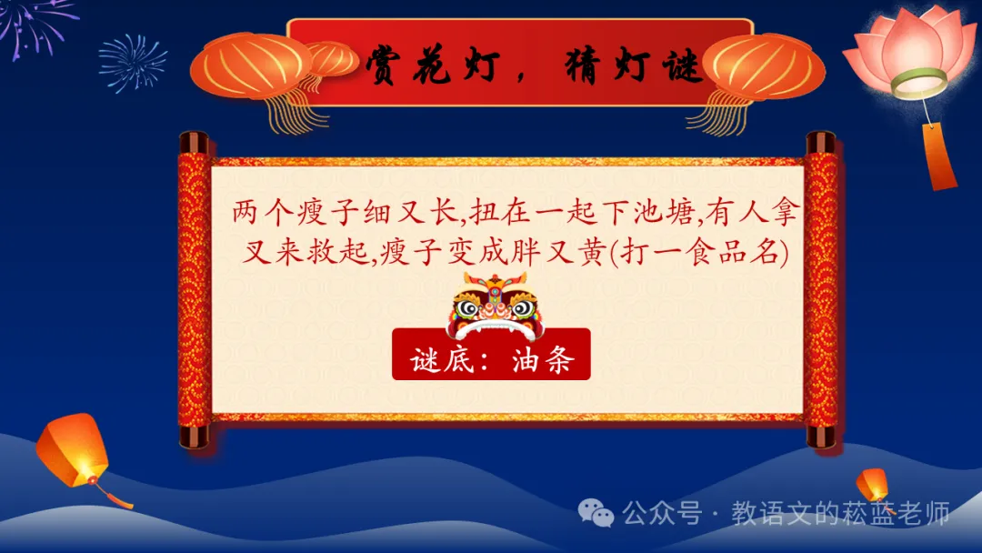 (4)如果想要猜灯谜环节更长一些,附赠了一份《猜灯谜》课件,可以自行复制修改。