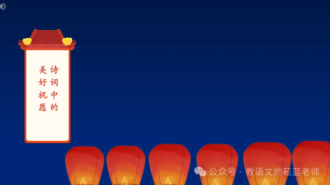 2、出示放飞孔明灯的动画,展示古代诗词中的美好愿望。