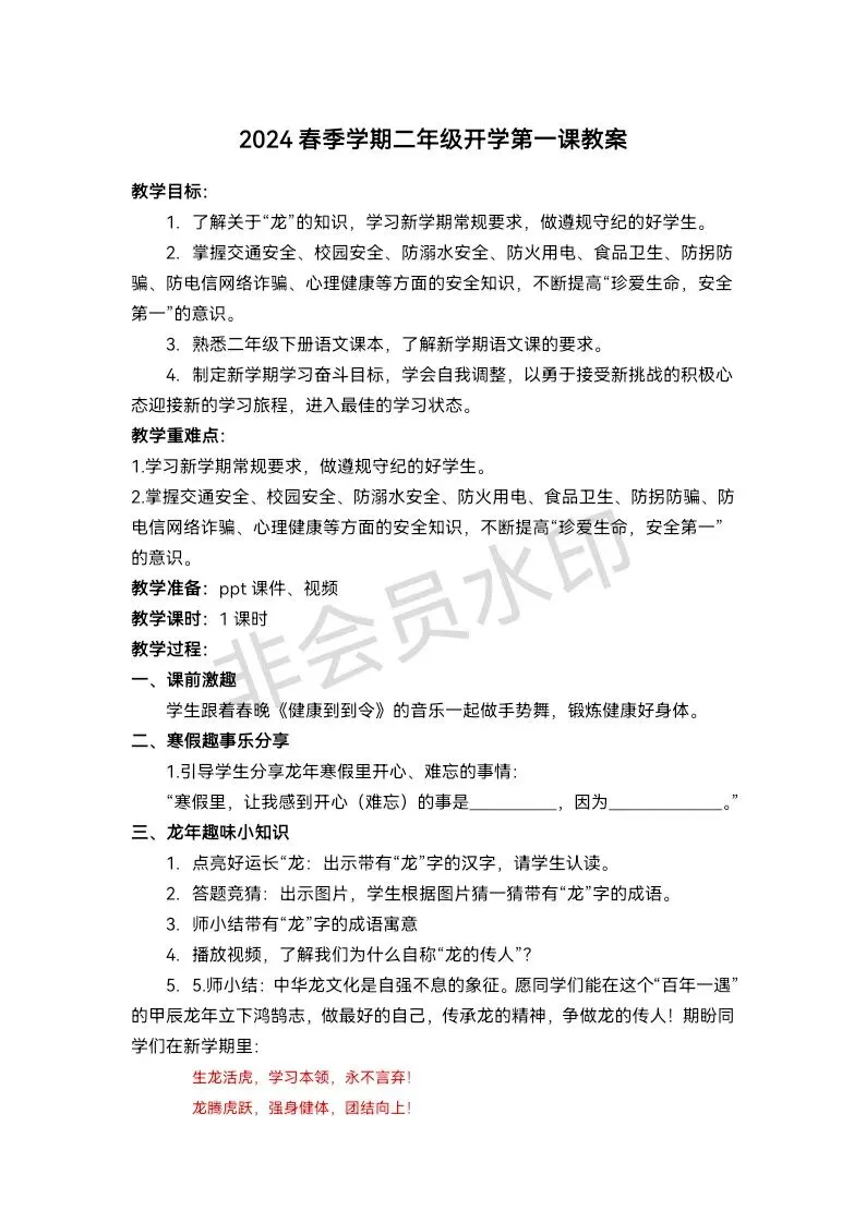春季学期二年级开学第一课教案