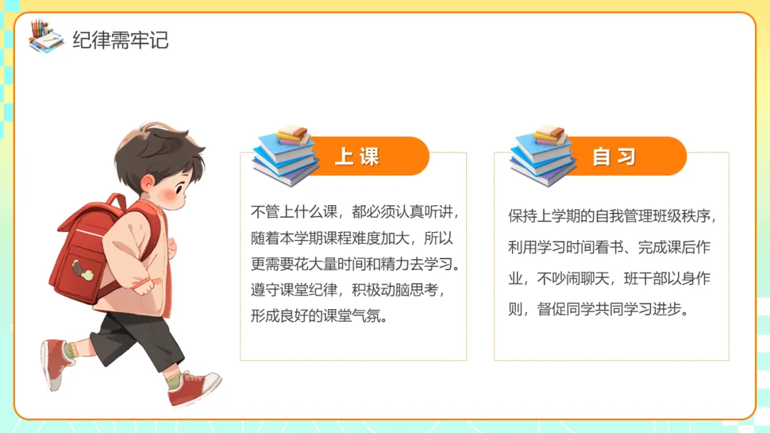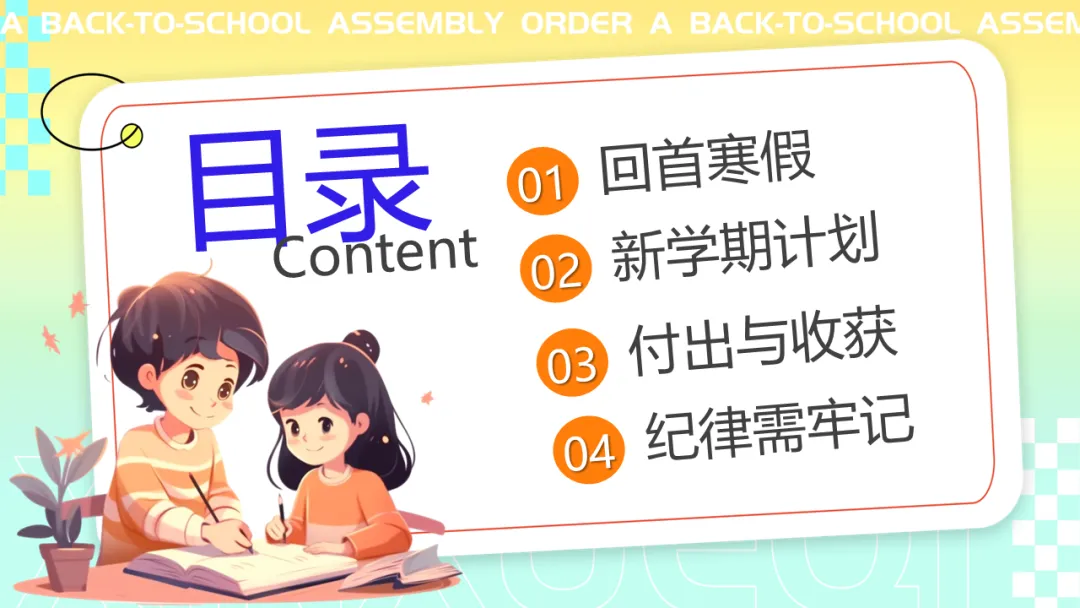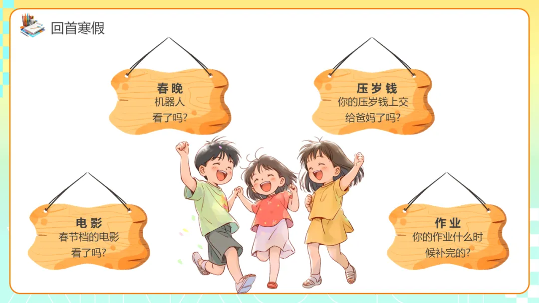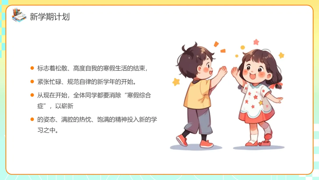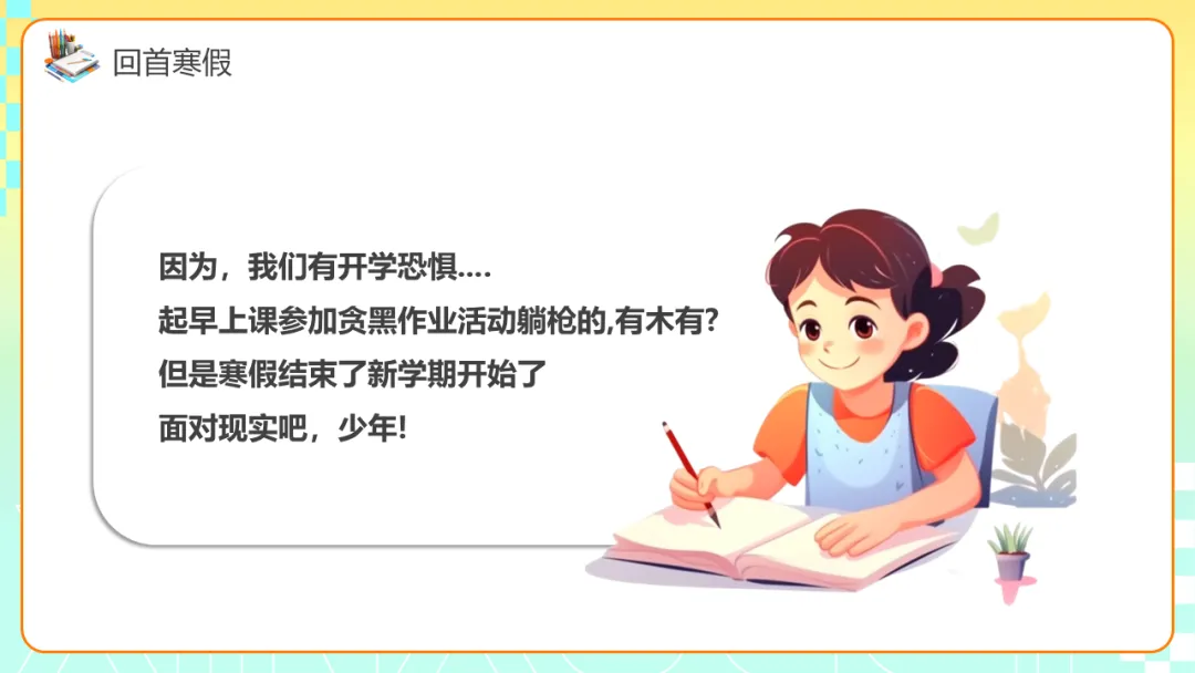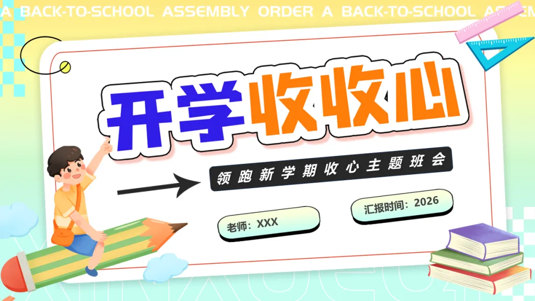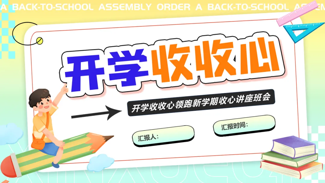 本期给大家分享的是春季开学收心主题班会ppt课件,应对假期后常见的生物钟紊乱、注意力涣散、目标感弱化、规则意识松动等现象,是重要的开学仪式,也是启动学生内在驱动力、重建学习节奏等的重要手段。