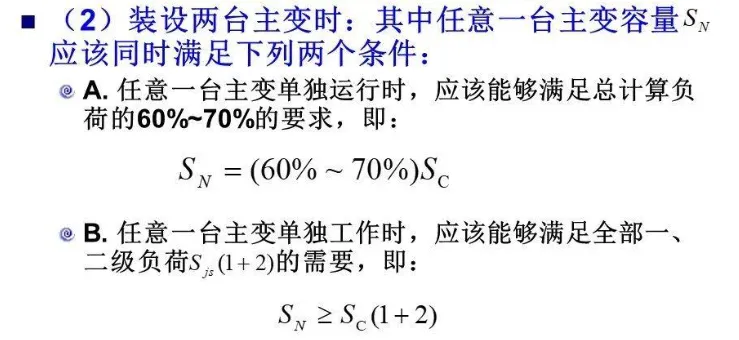(3)三级负荷一般选择一台主变,负荷较大时也可选择两台主变;