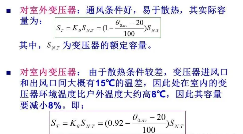 (3)可以综合考虑上述二者的影响,但是对于户外变压器而言,不得超过30%;户内变压器不得超过20%;干式变压器一般不考虑正常过负荷。