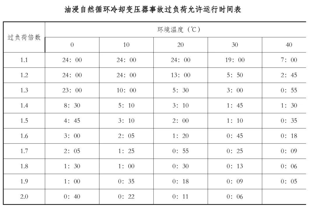 变压器的事故过负荷能力