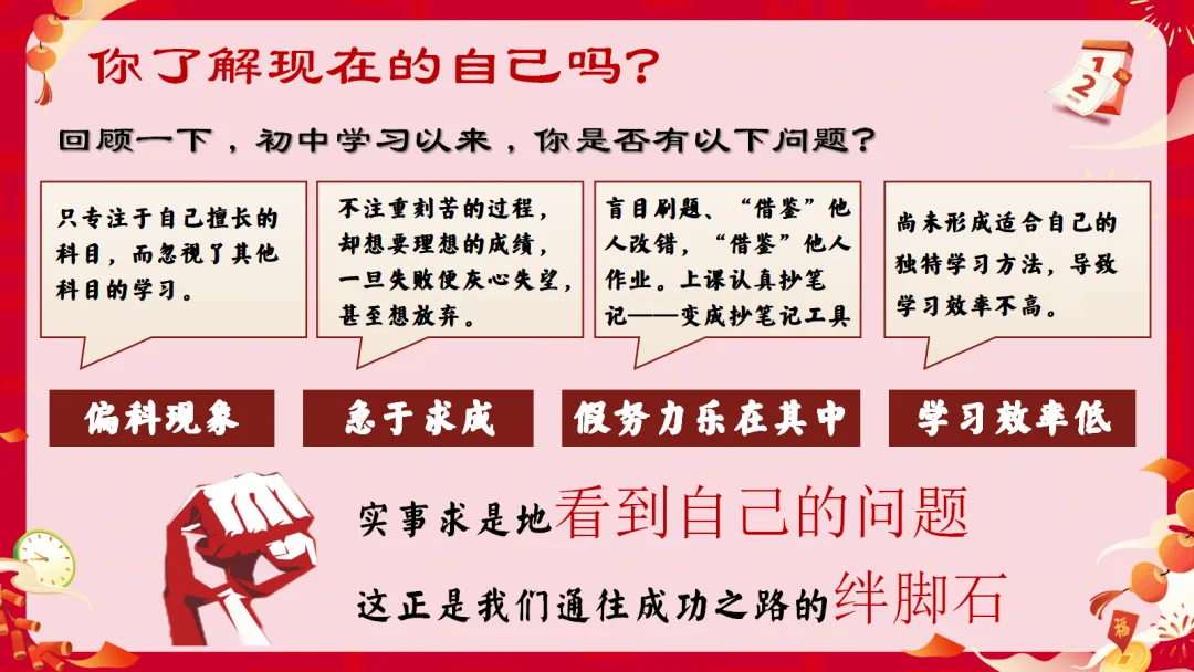引导学生客观认识自身的学习状况,识别并克服学习中的偏科、假努力等问题。通过具体的学习方法和时间管理策略,帮助学生提高学习效率,形成适合自己的学习模式,培养自律和自信的品质。