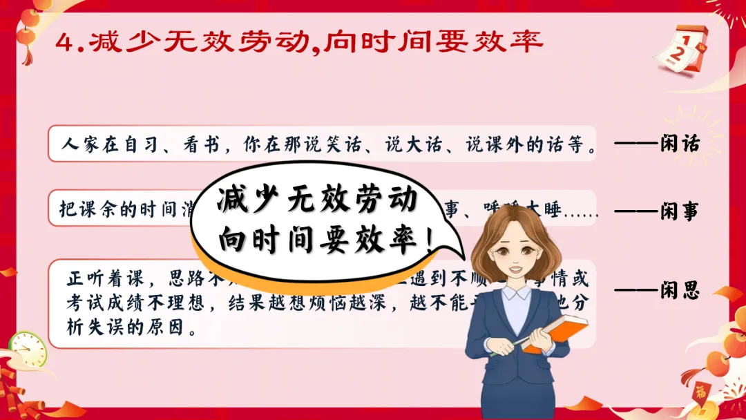 01效率为先,找到适合自己的学习节奏——不要顾此失彼,学的是数学心里想的是物理,结果两科都没有学好。日常性的学习任务必须要坚持;时间安排要及时调整,不可机械。