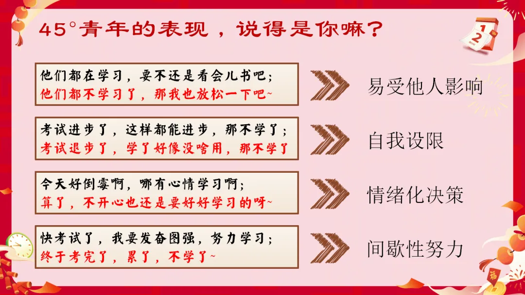 05内心强大、自律自信,不断去挑战自我——良好的精神状态,这和学习本身一样重要。坚持还是放弃?怀疑自我还是满怀信心继续奋斗?这些困扰如果不解决,势必就会成为学习的阻力。