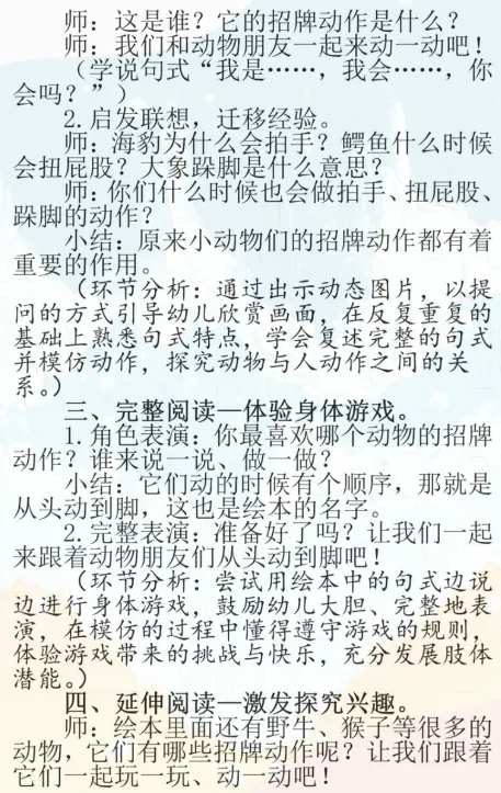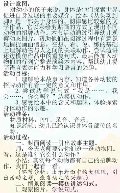 >幼儿园小班语言《从头到脚》公开课,附课件PPT+教案+上课实录