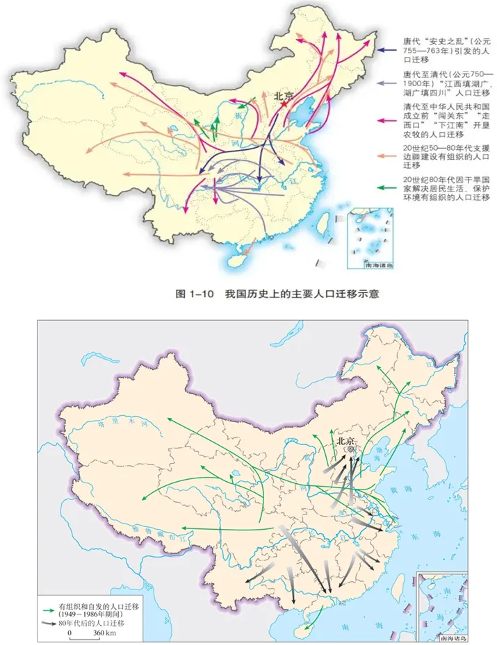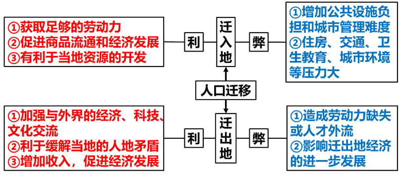 (2)按迁移方向:农村→城市(主要类型)、农村→农村、城市→城市、城市→农村