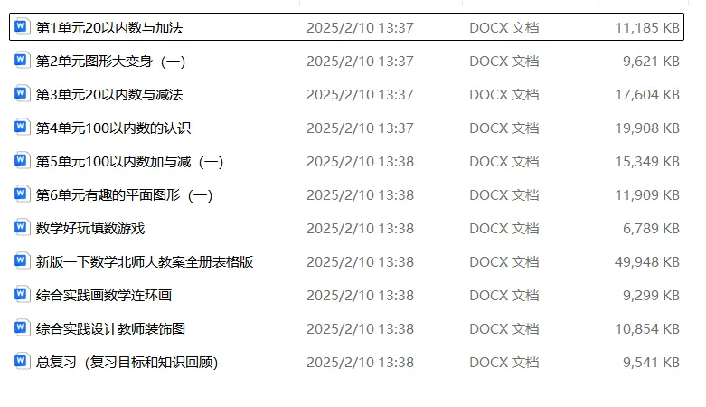 2025年新教材北师大版一年级数学下册目录 第一单元 20 以内数与加法 第二单元 图形大变身 (一) 综合实践 设置教室装饰图 第三单元 20 以内数与减法 第四单元 100 以内数的认识 数学好玩 填数游戏 第五单元 100 以内数加与减 (一) 第六单元 有趣的平面图形 (一) 综合实践 画数学连环画 总复习 2025年新教材北师大版一年级数学下册教学计划 一、学情分析 一年级学生刚入学不久,在经过上学期的学习后,对数学学习有了初步的认识和体验,具备了一定的简单计算能力和初步的观察、操作能力。但由于年龄小,他们的注意力难以长时间集中,以形象思维为主,抽象思维能力较弱。在数学学习中,对于直观、生动的教学内容接受度较高,而对于较为抽象的概念和问题,理解起来可能存在困难。同时,学生之间的学习基础和学习能力也存在一定差异,部分学生能够较快掌握新知识,而部分学生则需要更多的时间和练习来巩固。 二、教材分析 1.内容结构:本学期教材内容涵盖数与代数、图形与几何、综合与实践等多个领域。数与代数领域包括 20 以内数的加减法、100 以内数的认识与加减法;图形与几何领域有图形的认识与操作;综合与实践则通过设计教室装饰图、画数学连环画等活动,培养学生综合运用知识的能力。 2.知识特点:知识编排由浅入深,注重从学生的生活实际出发,如 “开心农场”“一起做家务” 等情境,让学生在熟悉的场景中学习数学知识,感受数学与生活的紧密联系。同时,强调学生的动手操作和自主探究,通过 “搭积木”“做一做”“动手做” 等活动,帮助学生建立数学概念,理解数学算理。 三、教学目标 1.知识与技能 o学生能正确计算 20 以内数的加减法和 100 以内数的不进位加法、不退位减法,掌握加减法的运算方法和算理。 o认识 100 以内的数,理解数的意义,能正确读写数,掌握数的顺序和大小比较。 o认识长方形、正方形、三角形、圆等平面图形,能直观辨别这些图形,并通过动手操作了解图形的特征。 2.过程与方法 o通过 “古人计数”“搭积木” 等活动,培养学生的观察、操作、分析和推理能力,发展学生的数感。 o在 “做一做”“找一找” 等图形学习活动中,提高学生的空间观念和动手实践能力。 o通过解决 “开会啦”“回收废品” 等实际问题,让学生经历从实际问题中抽象出数学问题,再到解决问题的过程,培养学生解决问题的能力。 3.情感态度与价值观 o激发学生对数学学习的兴趣,使学生在数学学习中获得成功体验,增强学习数学的自信心。 o培养学生合作交流的意识和习惯,在小组活动中学会倾听他人意见,与他人友好合作。 o感受数学在生活中的广泛应用,培养学生热爱生活、热爱数学的情感。 四、教学重难点 1.教学重点 o20 以内数的加减法和 100 以内数的加减法运算。 o100 以内数的认识,包括数的意义、读写、顺序和大小比较。 o平面图形的认识和特征。 2.教学难点 o理解加减法的算理,尤其是 20 以内进位加法和退位减法的算理。 o建立 100 以内数的数感,理解数位的意义。 o从实际问题中抽象出数学模型,并运用所学知识解决问题。 五、教学措施 1.情境教学:创设丰富多样的生活情境,如 “开心农场”“买文具” 等,将数学知识融入其中,让学生在具体情境中感受数学的实用性,提高学习兴趣。 2.直观教学:充分利用教具、学具,如计数器、积木、图形卡片等,通过直观演示和学生动手操作,帮助学生理解抽象的数学概念和算理。 3.小组合作学习:组织学生开展小组合作学习,如在 “做个加法表”“做个减法表” 等活动中,让学生在小组内交流讨论,共同完成任务,培养学生的合作意识和交流能力。 4.分层教学:关注学生的个体差异,根据学生的学习情况进行分层教学。对于学习困难的学生,给予更多的关心和指导,设计针对性的练习,帮助他们逐步掌握知识;对于学有余力的学生,提供拓展性的学习内容,满足他们的学习需求。 六、教学进度安排 第一阶段:第 1 - 3 周,第一单元 20 以内数与加法 1.第 1 周 o古人计数 (一):通过古人计数的故事,引入 11 - 20 各数的认识,借助小棒等教具,让学生理解数的组成,掌握 11 - 20 各数的读法和写法。 2 课时 o古人计数 (二):进一步认识数位,了解个位和十位的意义,能正确用计数器表示 11 - 20 各数。 2 课时 2.第 2 周 o搭积木:结合搭积木的情境,学习 20 以内不进位加法和不退位减法,理解加减法的含义,掌握计算方法。 3 课时 o开心农场:通过开心农场的情境图,巩固 20 以内加减法的计算,培养学生解决实际问题的能力。 2 课时 3.第 3 周 o一起做家务:创设做家务的情境,让学生在解决实际问题的过程中,进一步熟练 20 以内加减法的运算。 2 课时 o小兔子安家:通过小兔子安家的情境,引导学生用 20 以内加减法解决问题,感受数学与生活的联系。 2 课时 o做个加法表:组织学生整理 20 以内加法算式,制作加法表,发现加法算式的规律,提高计算能力。 2 课时 第二阶段:第 4 - 6 周,第二单元 图形大变身 (一) 1.第 4 周 o做一做:让学生通过折一折、剪一剪、拼一拼等活动,初步认识长方形、正方形、三角形和圆,感知这些图形的特征。 3 课时 o找一找:引导学生在生活中寻找长方形、正方形、三角形和圆等图形,加深对图形的认识,培养学生的观察能力。 2 课时 2.第 5 周 o影子剧场:通过影子剧场的活动,让学生了解图形在光线下的