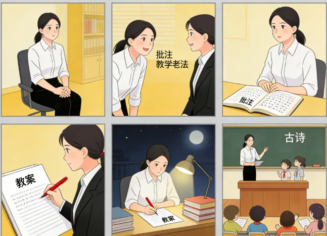 李老师拍拍我的肩:“别怕,第一次写,先模仿,再创造。咱们年级有教案模板,你先照着写,写完我帮你看。”