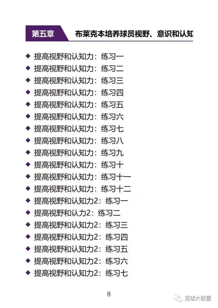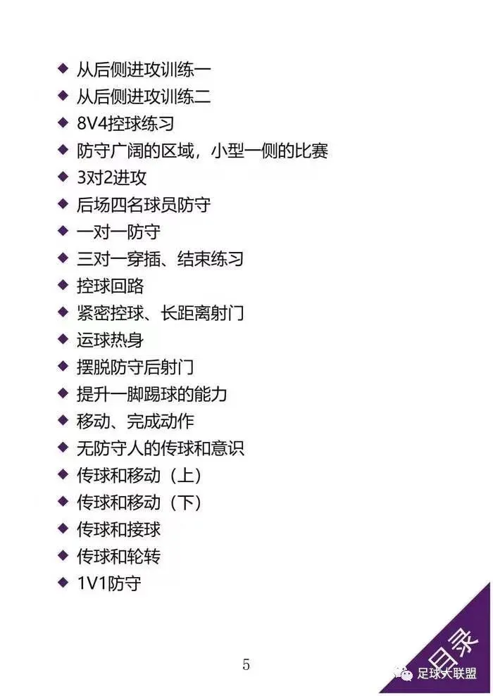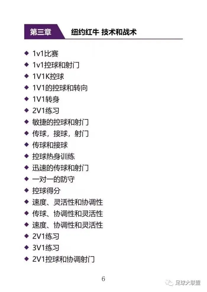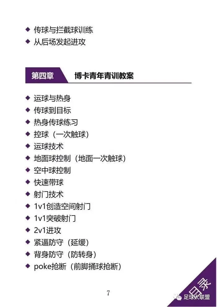 这本书是根据世界五个著名俱乐部的青训体系视频进行视频分析而创作的教案书籍,内涵134篇教案,包括阿贾克斯、国际米兰、博卡青年、纽约红牛、布莱克本俱乐部的青训教材,分布在书里共计五个章节,每个俱乐部题材一个章节,包含,技战术、热身、控球、协调、射门、门将、对抗形式、视野意识和认知力。