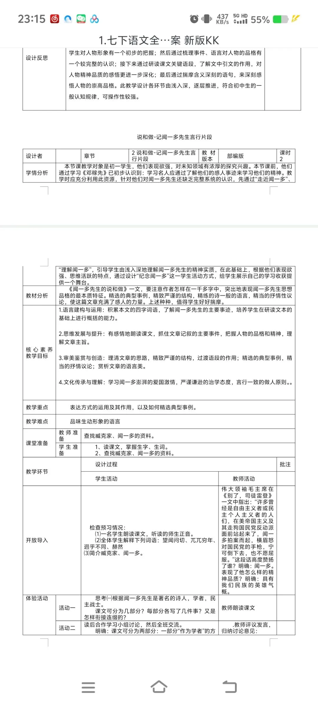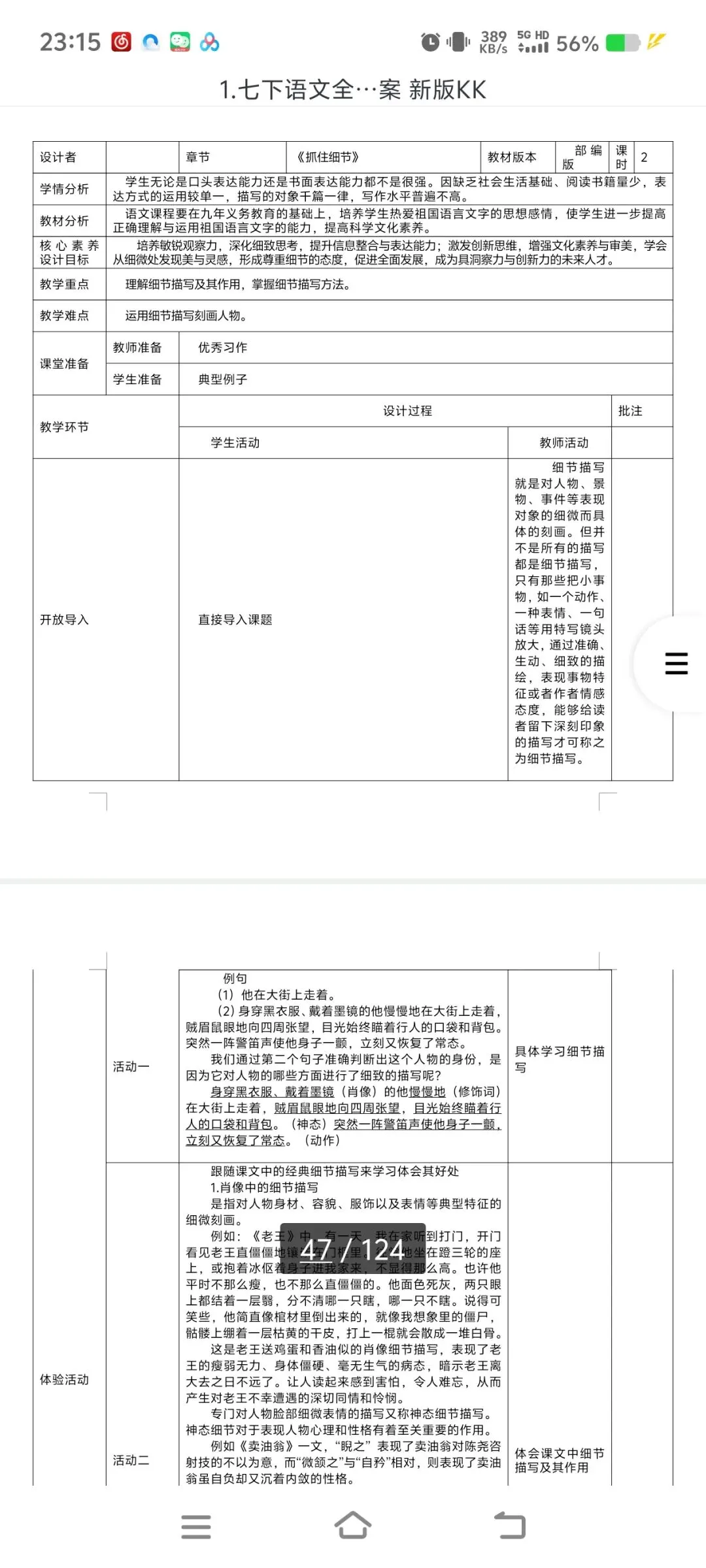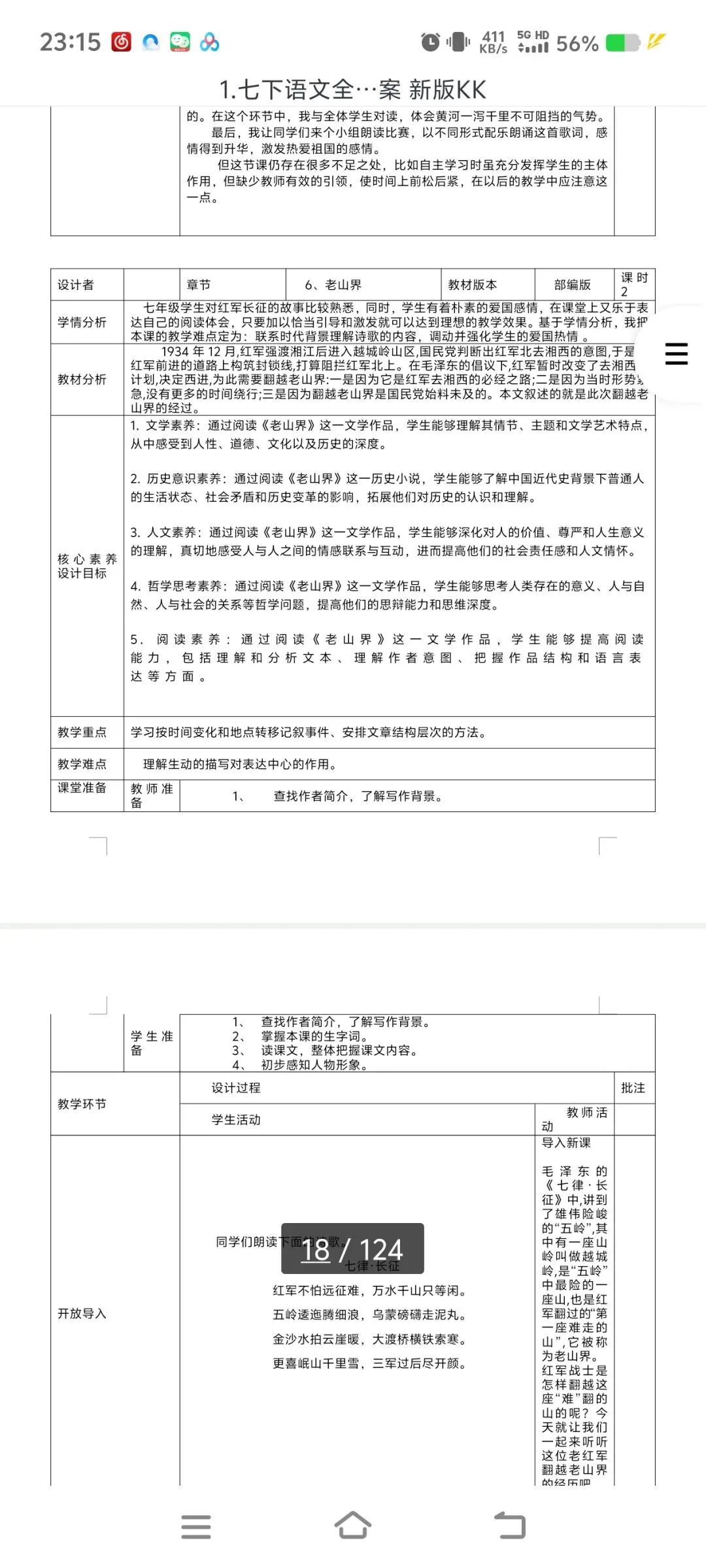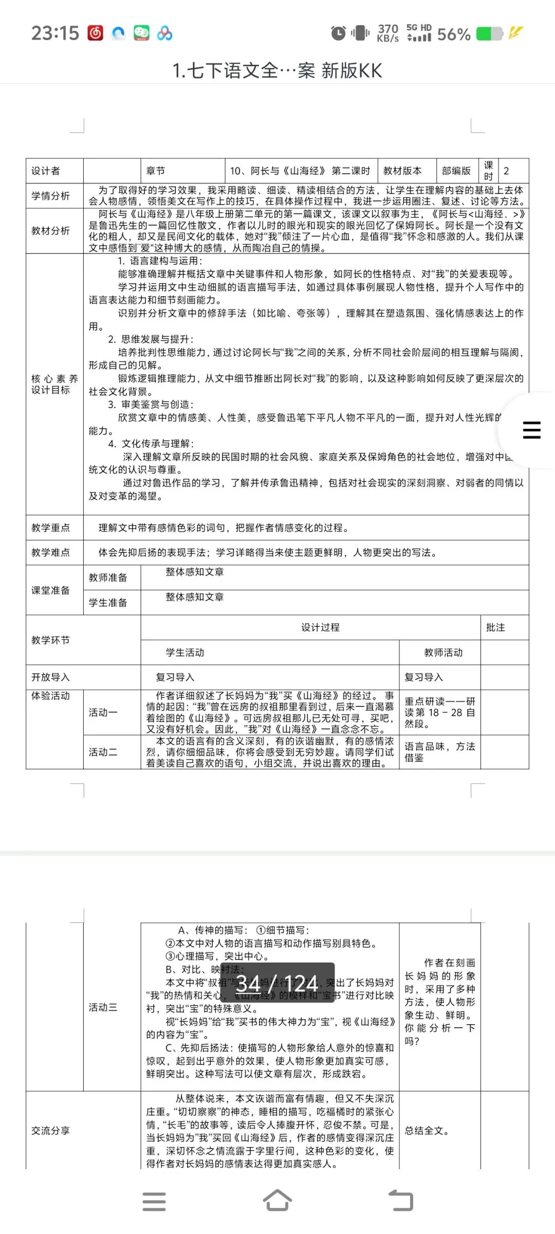 2026七下语文表格式教案|全一册通用