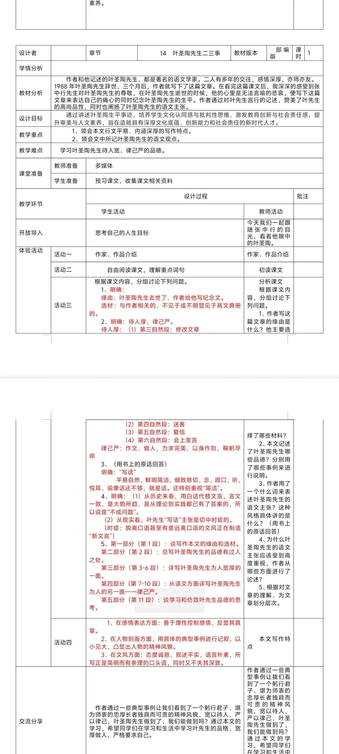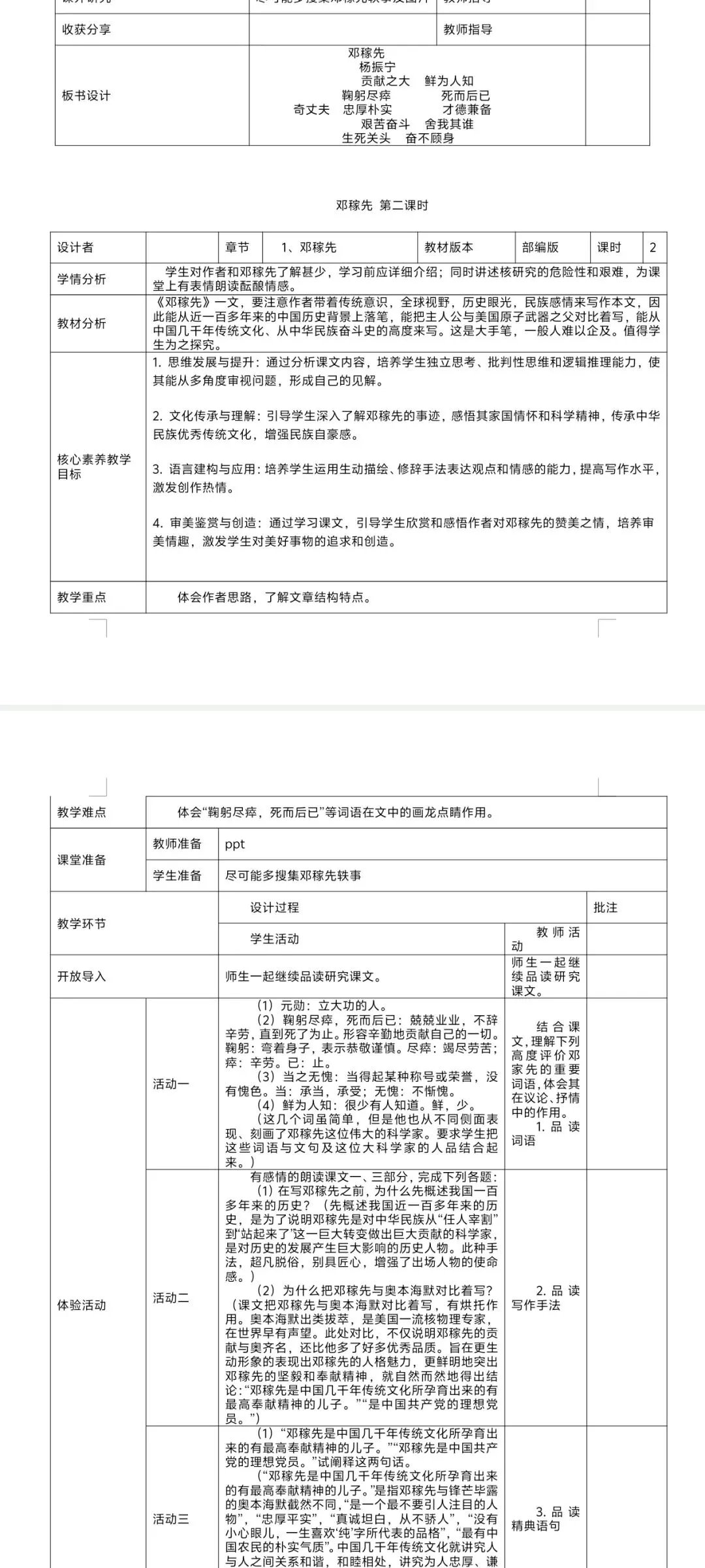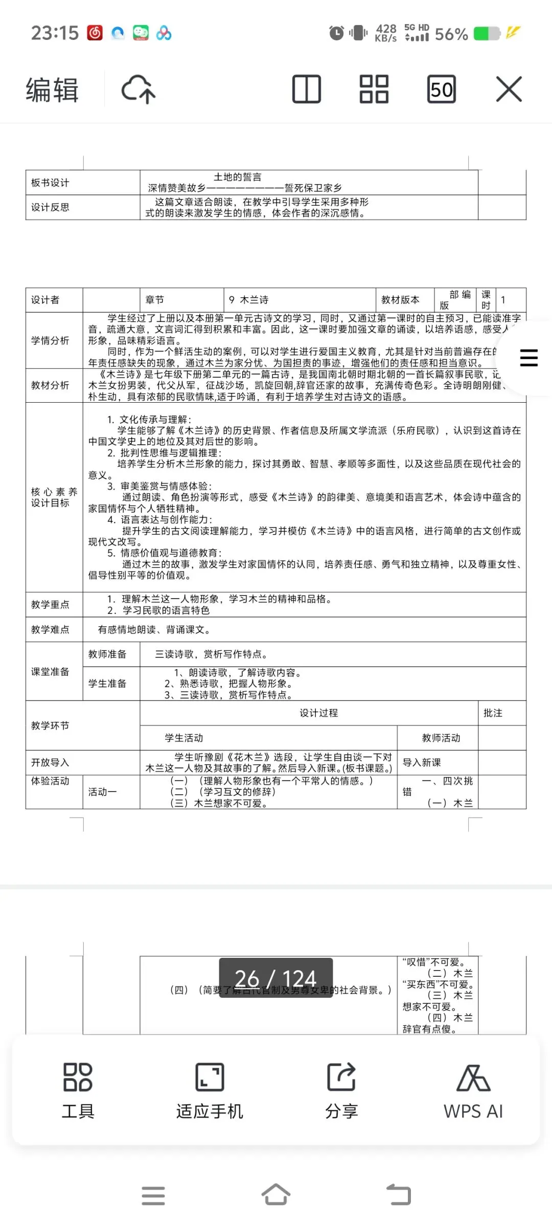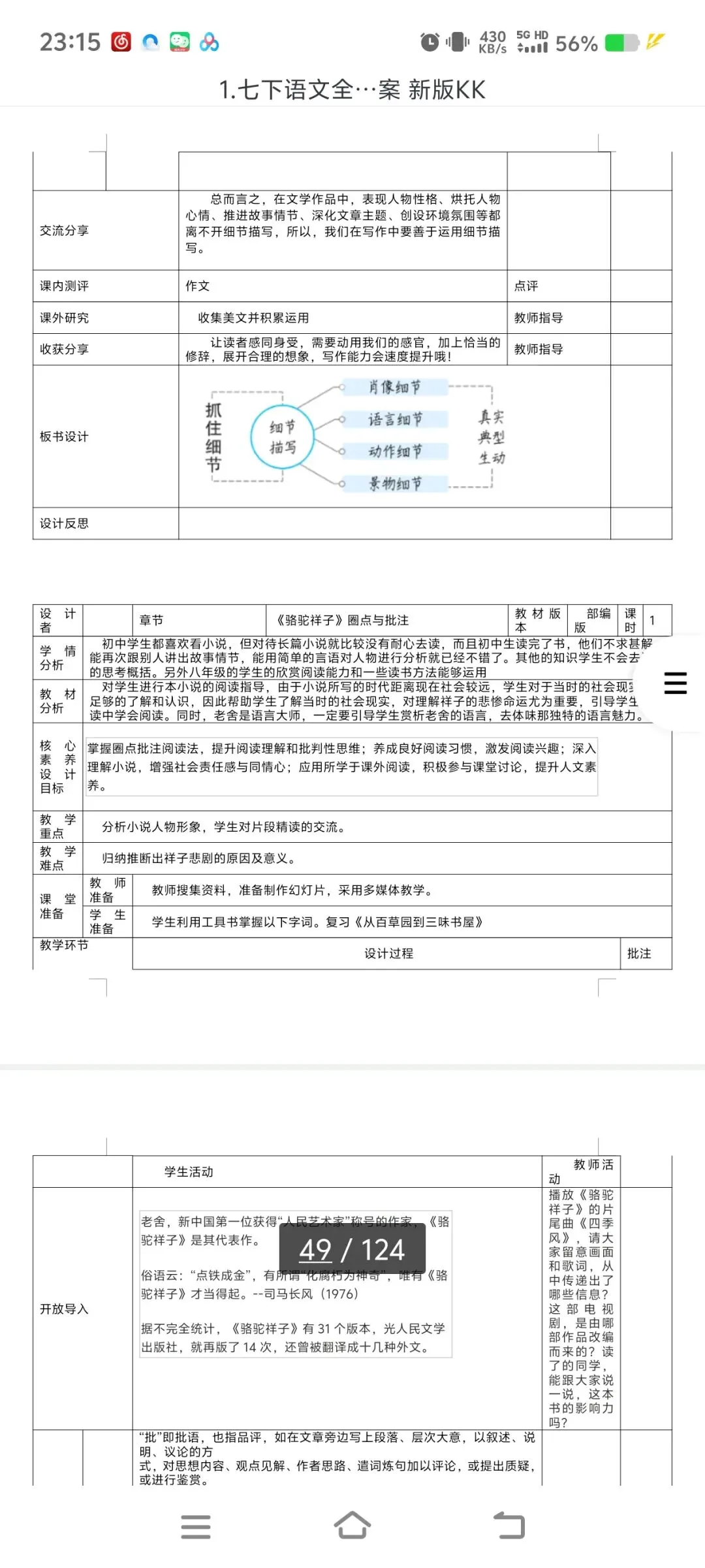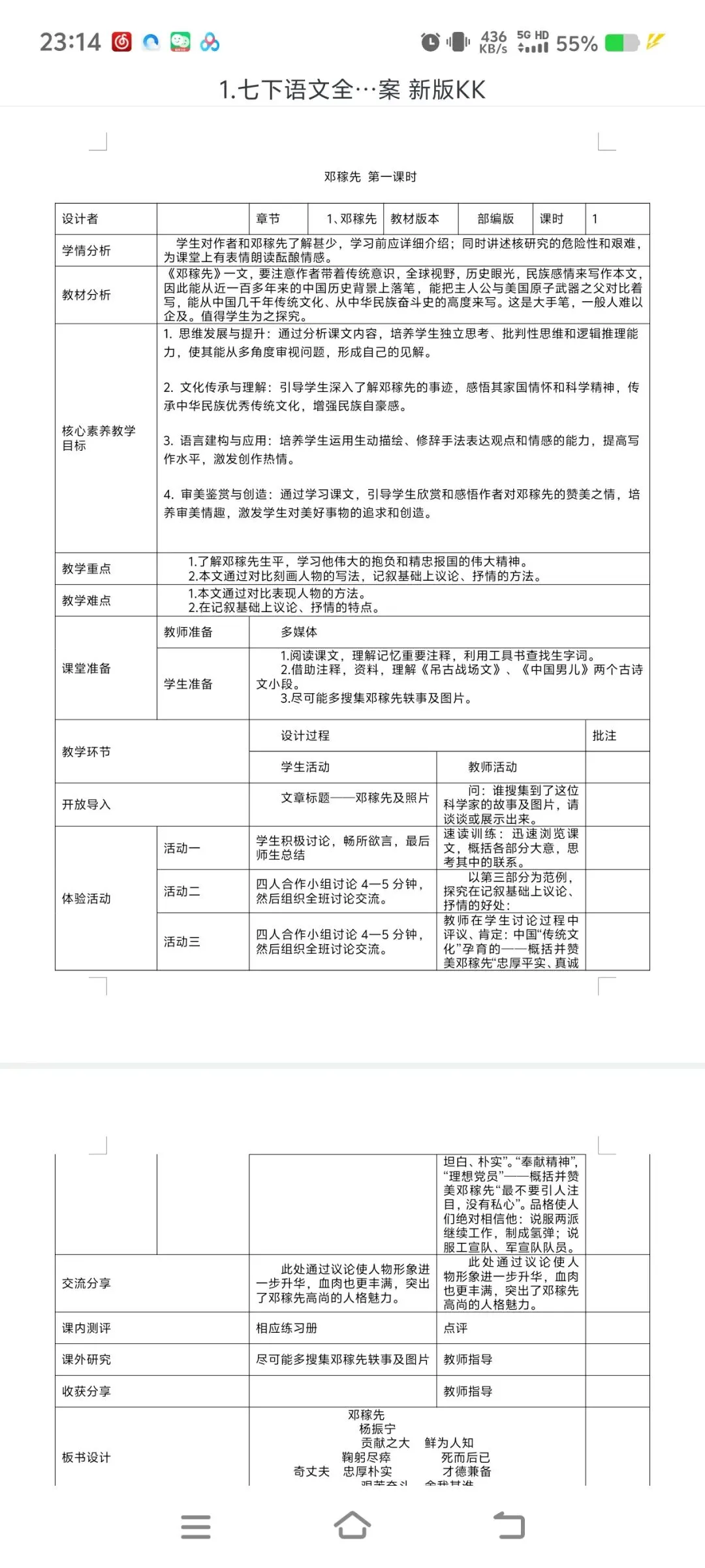 2026七下语文表格式教案|全一册通用