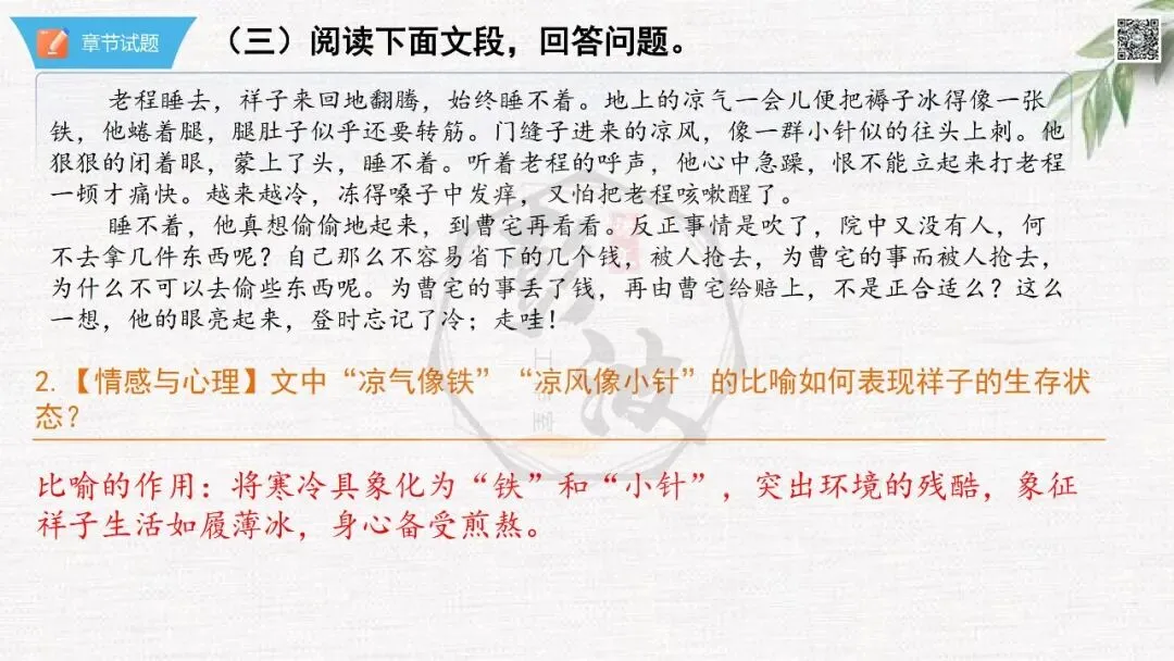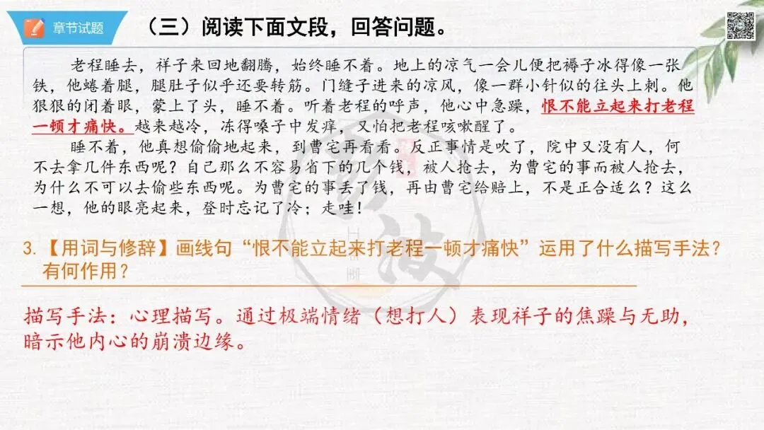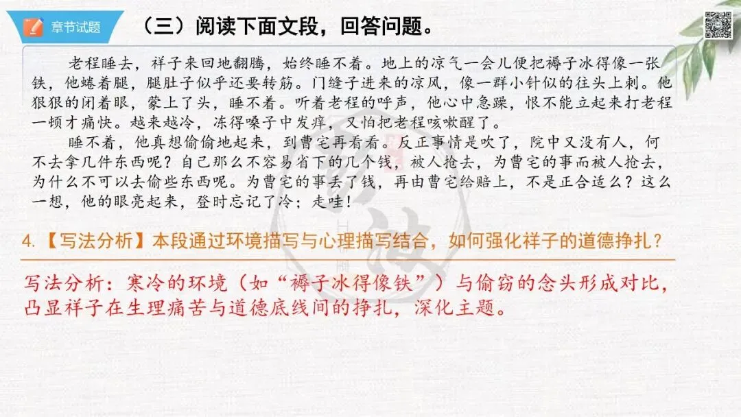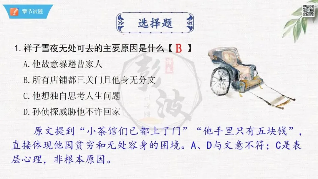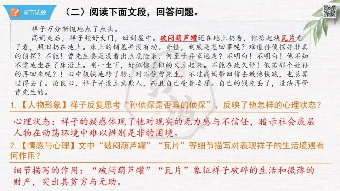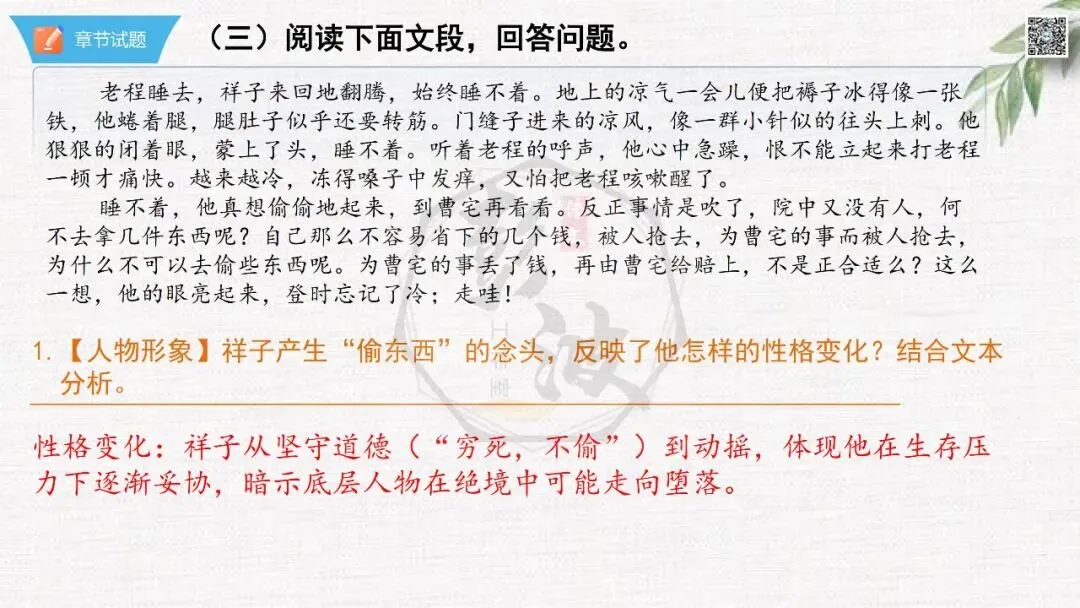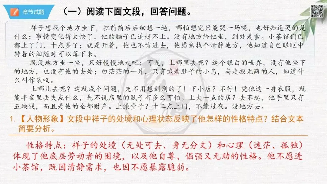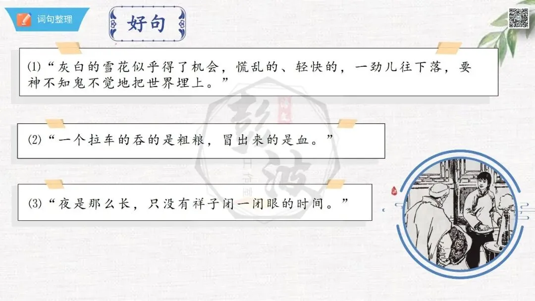 ◆02《骆驼祥子》章节课件24章-情节梳理+人物形象+语句赏析+章节试题(PPT)(65元)