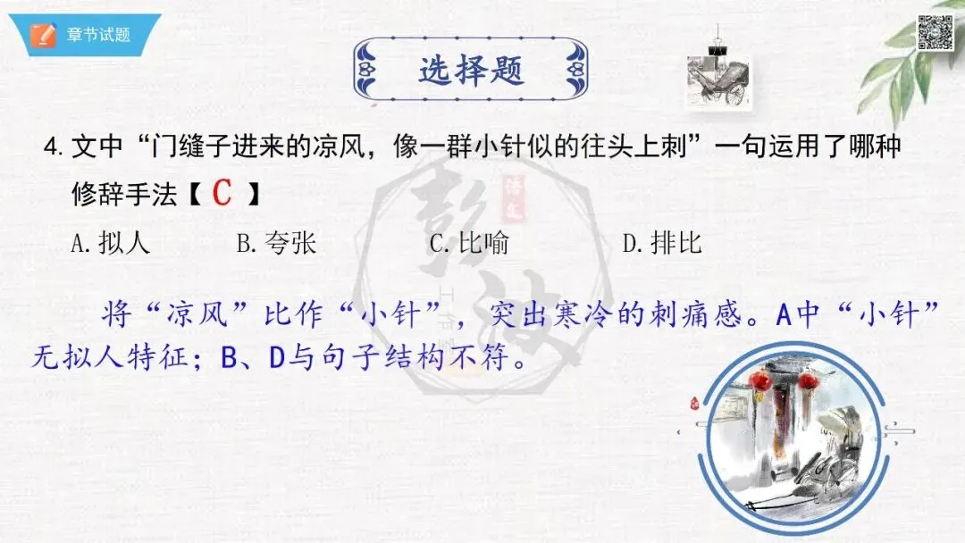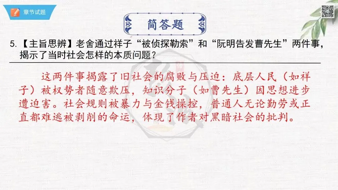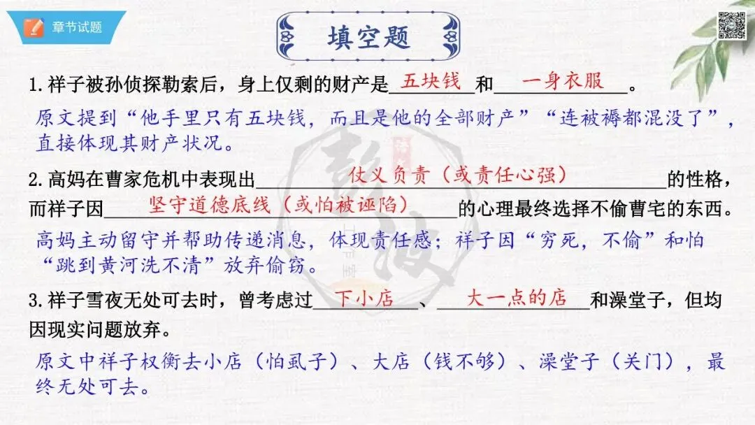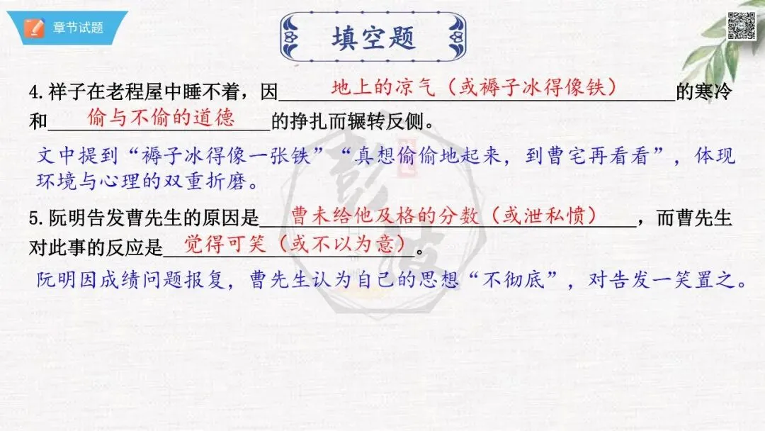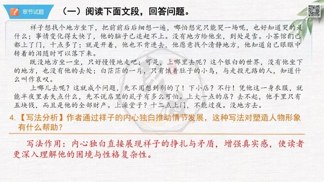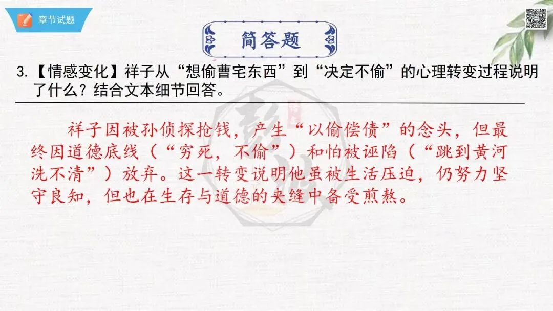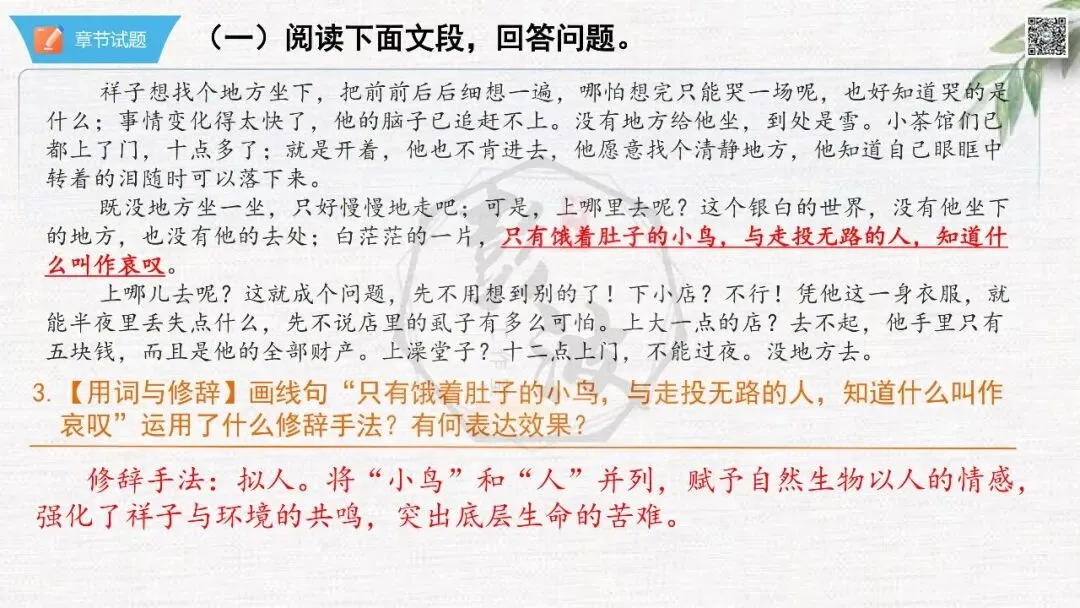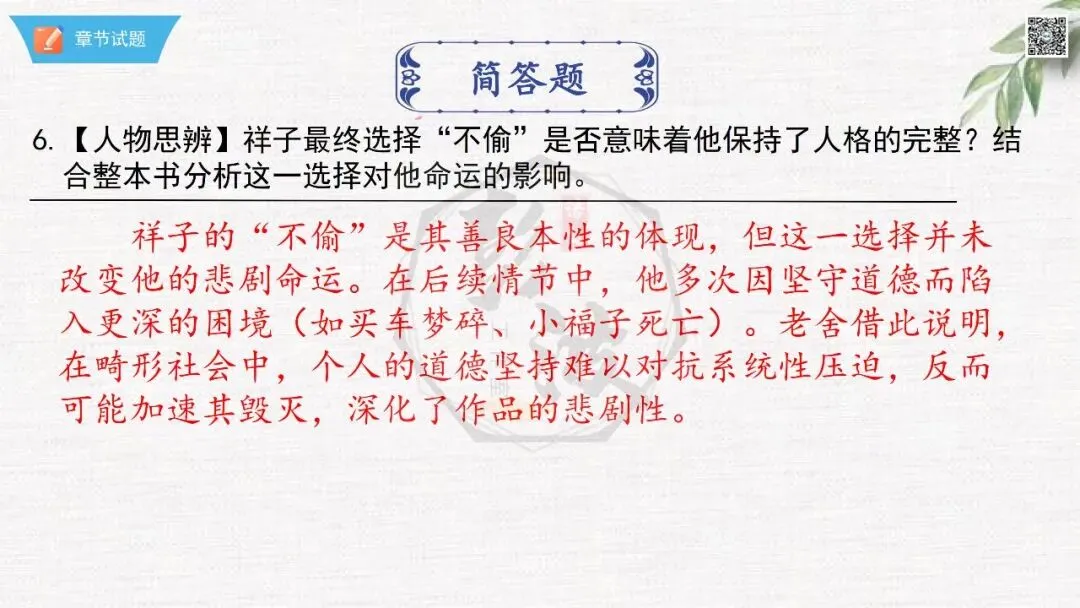 ◆02《骆驼祥子》章节课件24章-情节梳理+人物形象+语句赏析+章节试题(PPT)(65元)