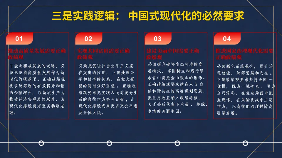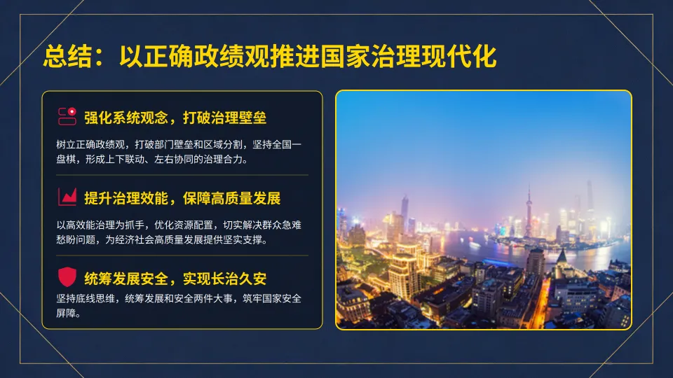:正确政绩观是国家治理现代化的 “基石”,强化系统观念,提升治理效能。