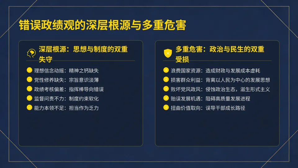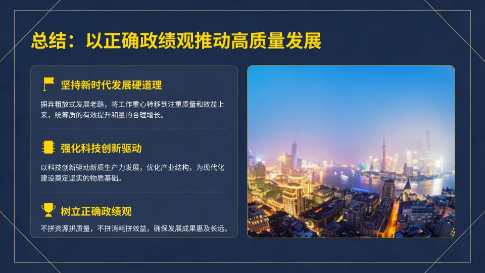 :正确政绩观是高质量发展的 “导航仪”,引导工作重点转向质量和效益。