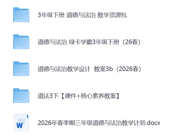 26春新统编版道德与法治1-6年级下册教案课件教学资源包(持续更新)·可下载。含教案、PPT 课件、教学素材,同步最新教材,紧扣核心素养,覆盖全册课时。排版规范、持续更新不脱节。老师备课省心、课堂高效,助力轻松上好每一节道法课。1年级下册 道德与法治 教学资源包