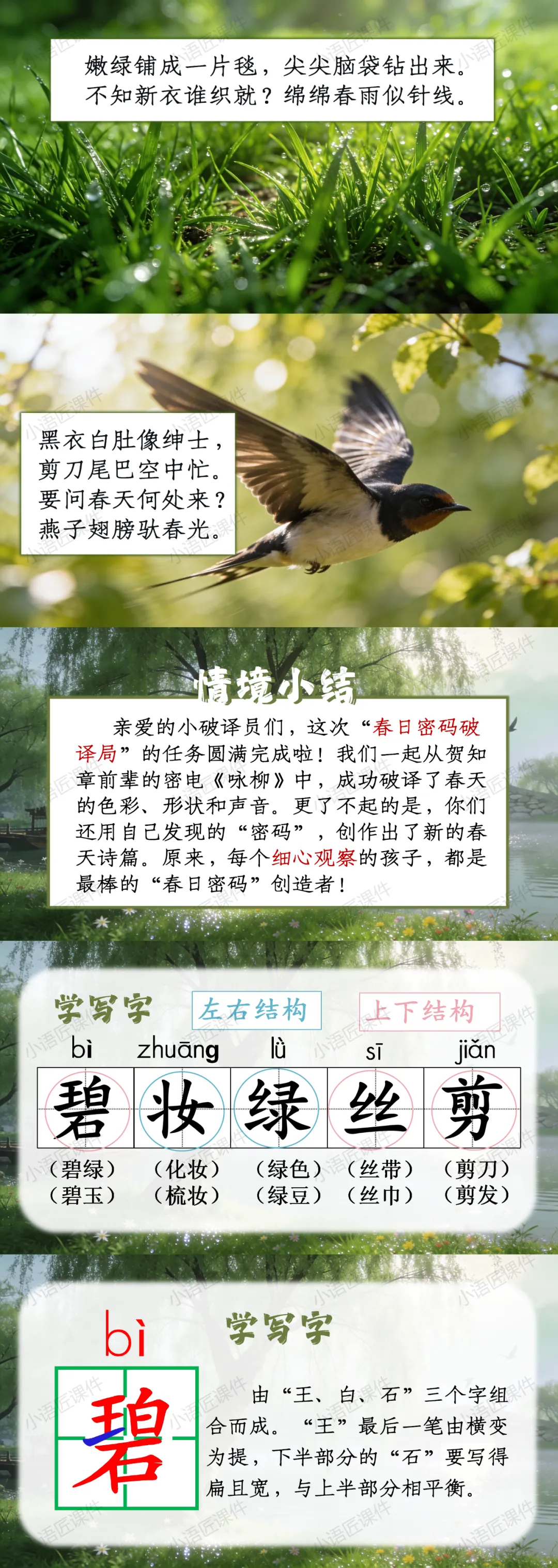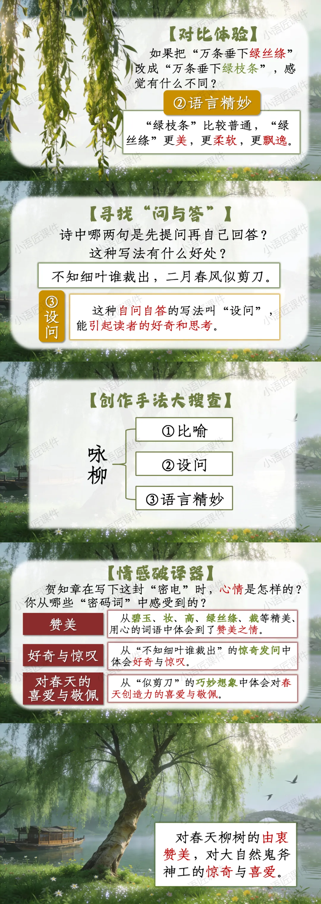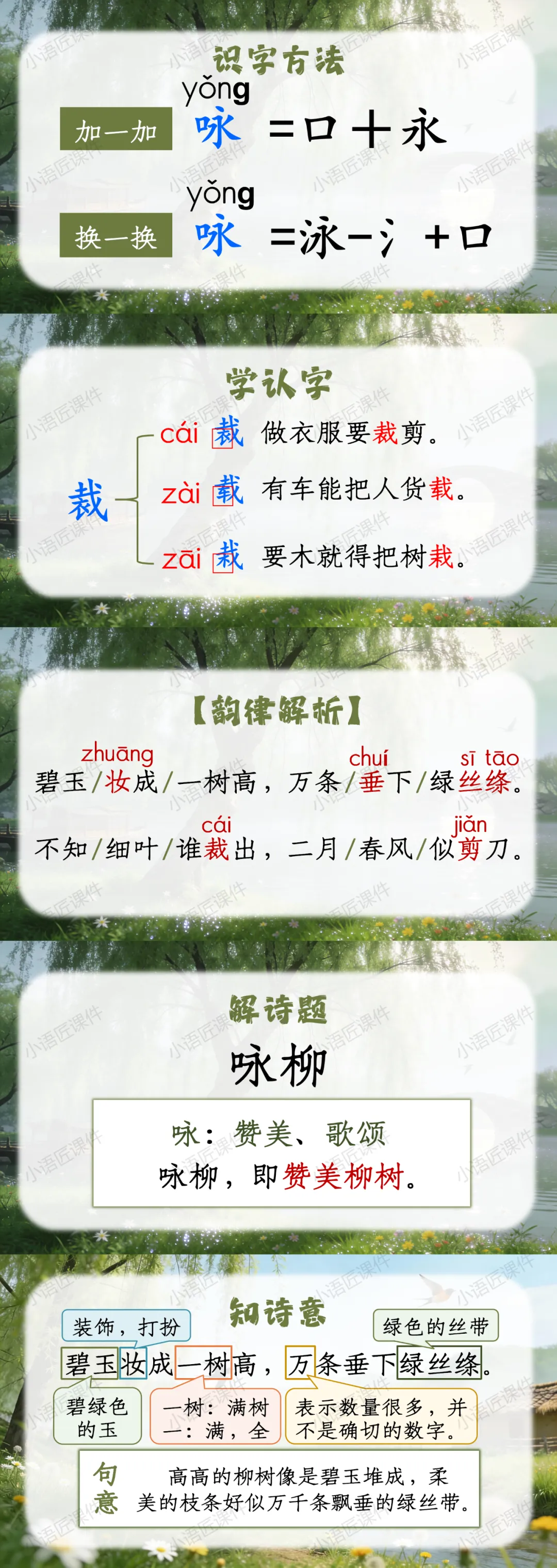 以上便是部编人教版二年级下册《咏柳》的独家课件的全部内容。