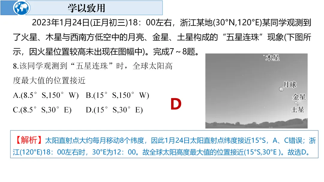 【精品课件】一轮复习微专题13 太阳视运动+配套精练word版