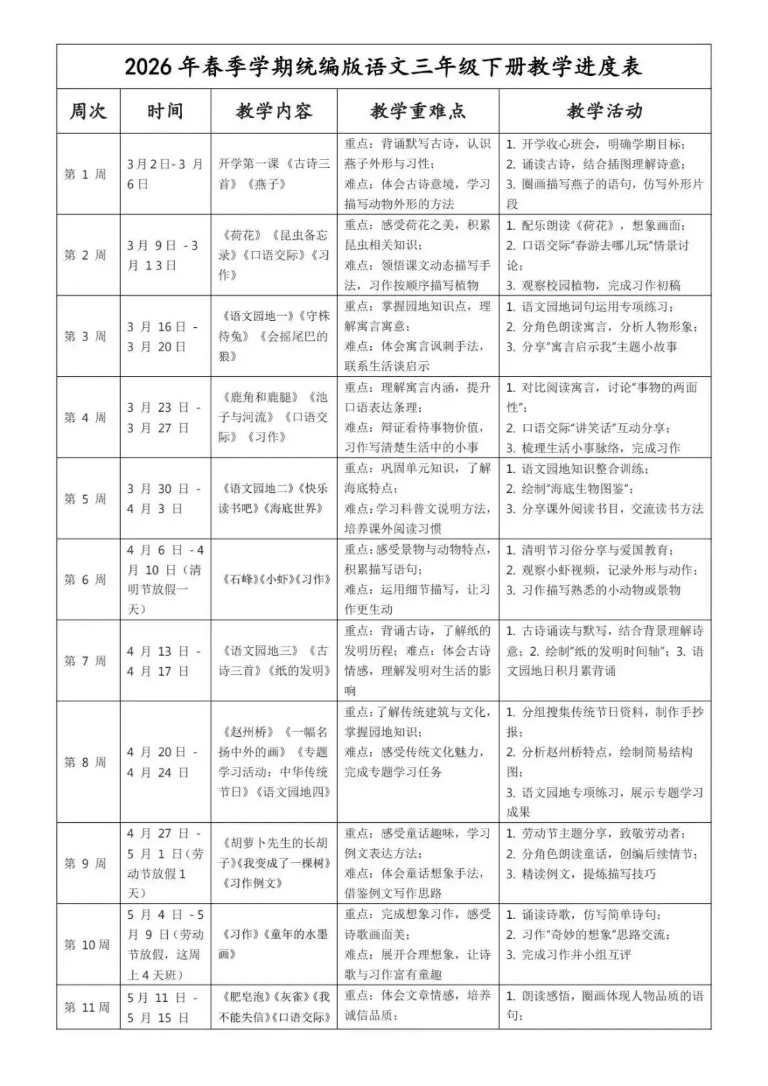 大家好,我是君君妈妈,感谢大家观看我的文章,今日分享2026年春《三年级下册语文课件教案+教学计划+教学进度表合集》根据新版教材内容编写,电子版可编辑可打印。全套资料包持续更新,包括核心素养课件教案、大单元教学课件教案、教学计划、教学进度表等。