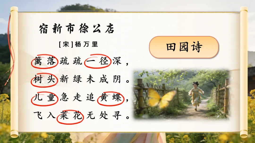 四下《宿新市徐公店》公开课AI赋能课件|赴一场春日童趣之约(课件+AI视频+教案)