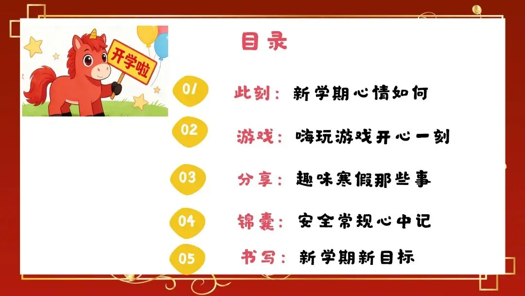 这是涟漪同研班主任工作室,今日分享《2026年开学第一课》课件和教案(电子版在结尾链接)。新学期将至,这份开学第一课涵盖假期回顾、安全护航和目标设立等,帮同学们快速适应校园生活,带着满满活力开启新学期~