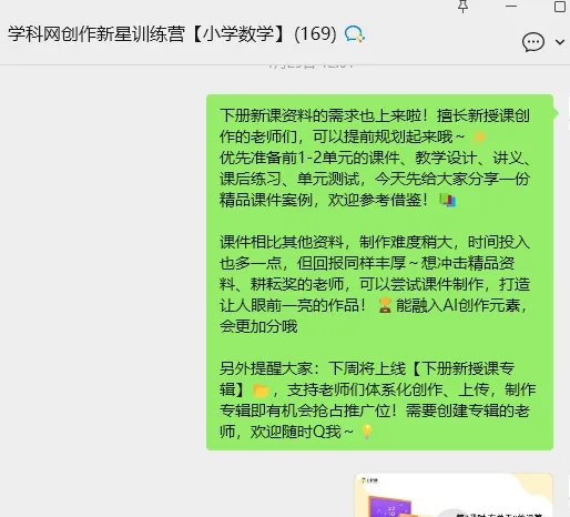 “学科网创作新星训练营”小学专属社群,正是为消除这些顾虑而生。不用独自摸索,不必盲目尝试——我们为您搭建了从0到1的完整阶梯。