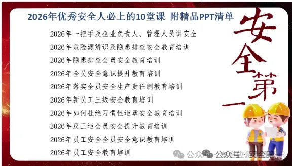 安全第一 让生活更美好!2026年安全人的安全PPT清单,化繁为简 让安全管理更简单!推动关口前移,立足预防在先!2026年提前布局!更多精品课件资料咨询可加小安:13522940595(收米)上好开工第一课 把好安全第一关!新年开局 安全先行,加强安全管控,部署节后工作重点,加强全员安全意识的树立,为新一年安全工作开好头、起好步!