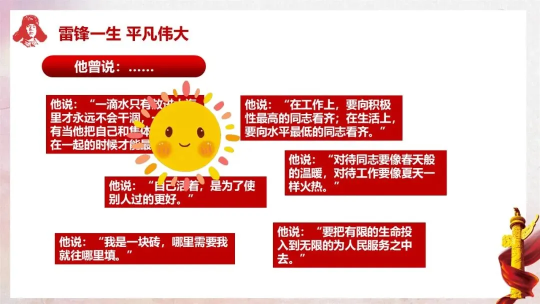 环节1:经典名言,初识雷锋